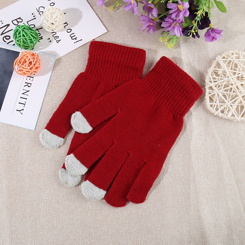 가을과 겨울에 타는 젊은 남성과 여성을위한 터치 스크린 장갑 방한 양모 단색 미끄럼 방지 손가락 따뜻한 장갑