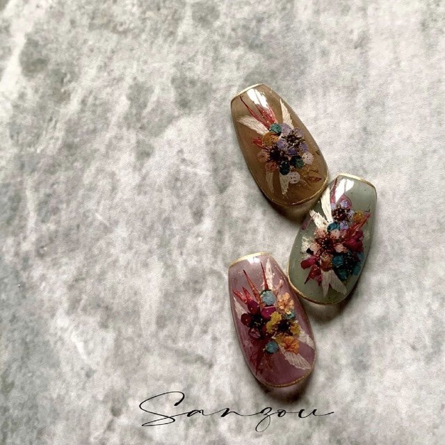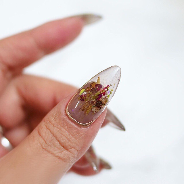 다크 페어리 네일 아트 수선화 레트로 컬러 빈티지 일본 스타일 뷰티 메이크업 말린 꽃 혼합 컬러 쥬얼리스토어 가기