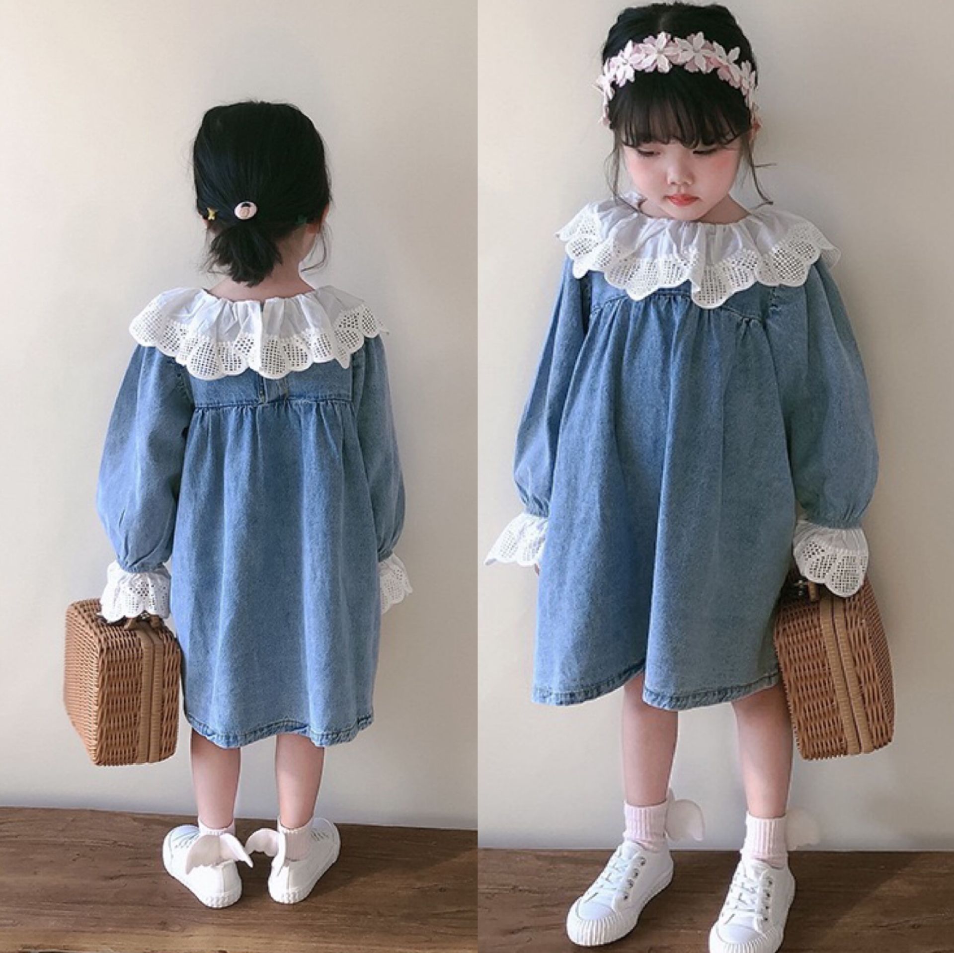 아이들의 달콤한 원피스 가을 소녀 꽃 레이스 데님 치마 어린이 원피스 3-8 세 아동 의류 머리카락의 세대