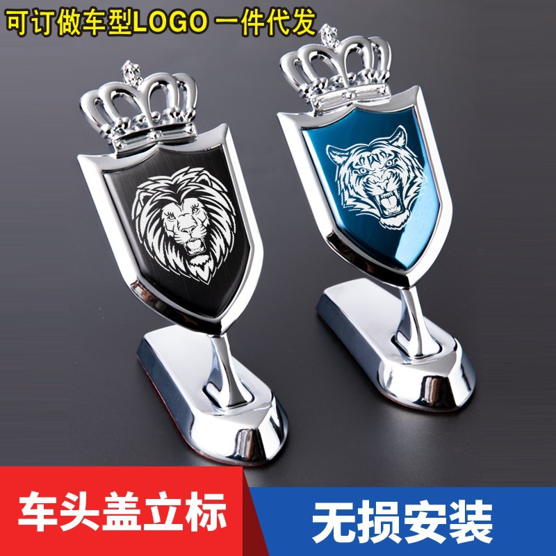 로고 기계 커버 후드 로고 금속 자동차 스티커 성격 크라운 킹 치킨 먹는 장식 액세서리 수정 자동차 스티커
