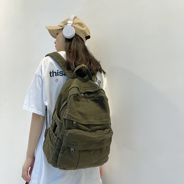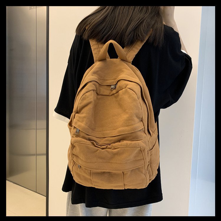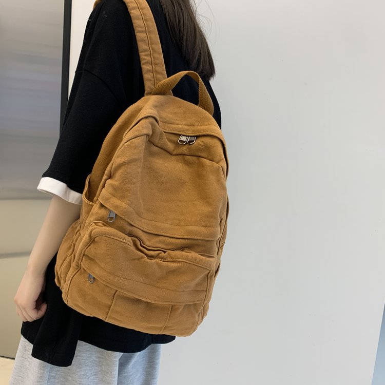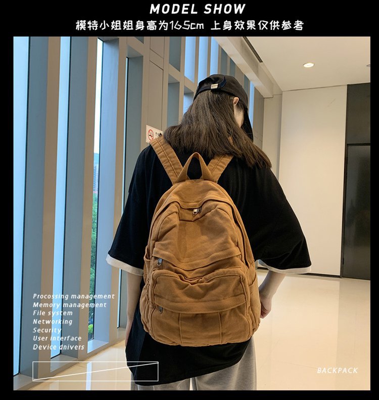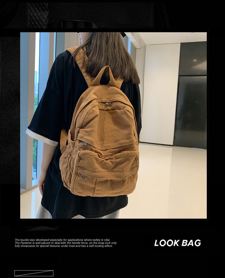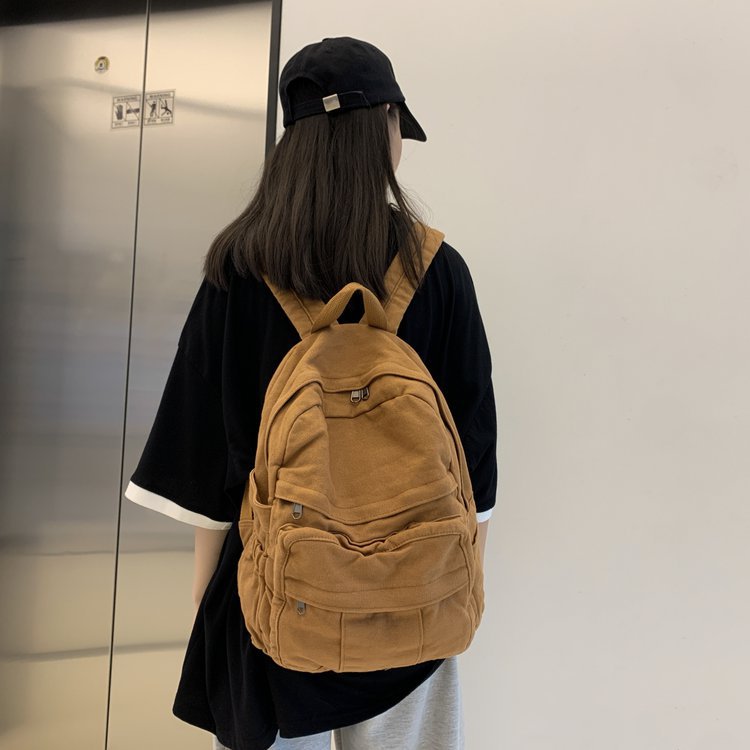 크로스 보더 백팩 여성용 레트로 대용량 심플 고등학생 책가방 여성용 한국식 유행 캔버스 백팩스토어 가기