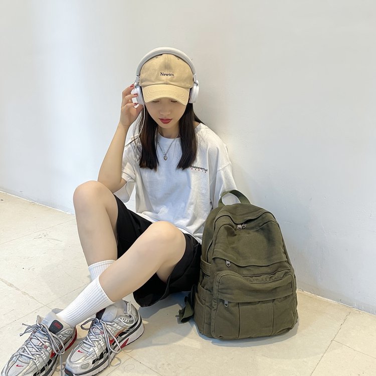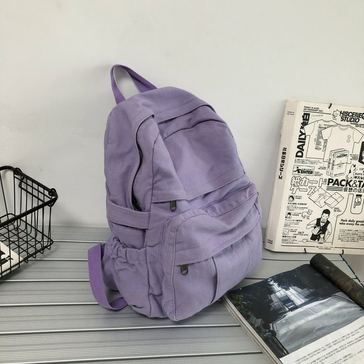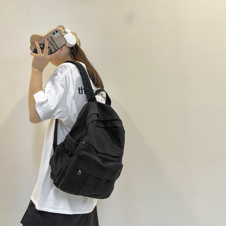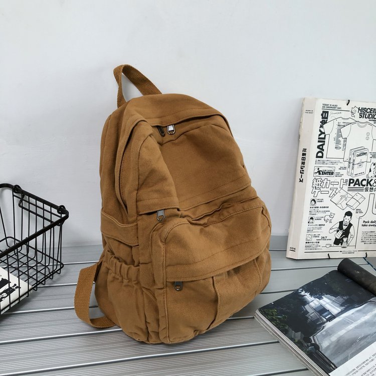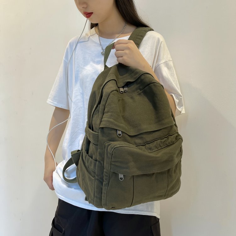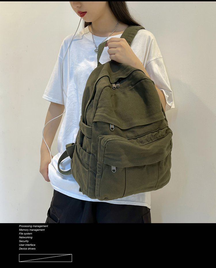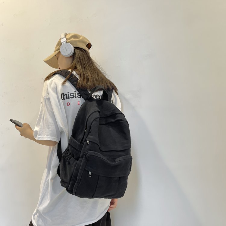 크로스 보더 백팩 여성용 레트로 대용량 심플 고등학생 책가방 여성용 한국식 유행 캔버스 백팩스토어 가기