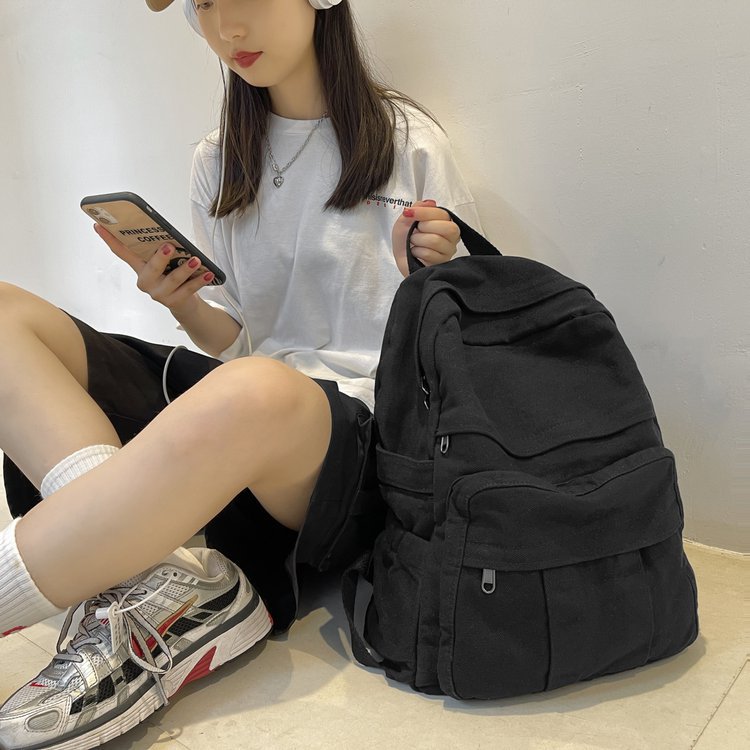 크로스 보더 백팩 여성용 레트로 대용량 심플 고등학생 책가방 여성용 한국식 유행 캔버스 백팩