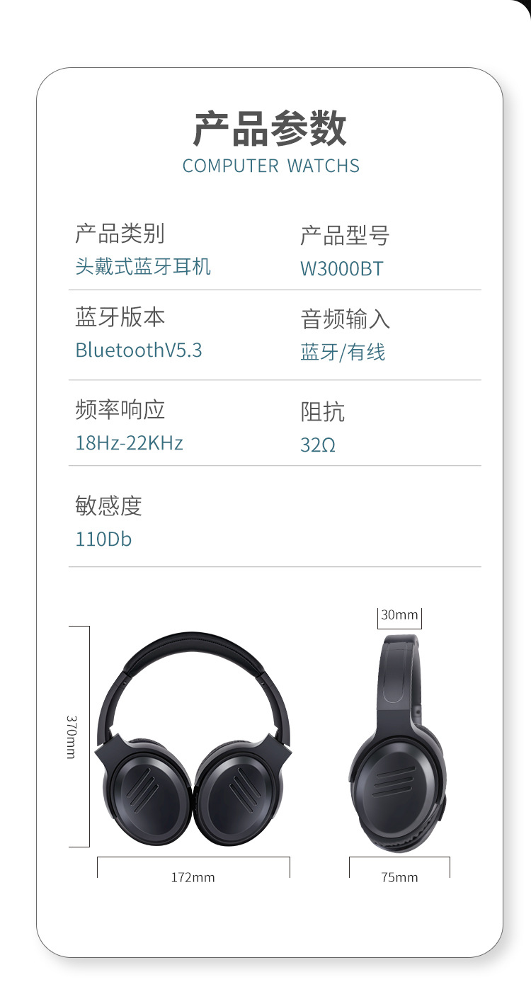 • W3000BT ANC 능동형 소음 감소 버전 맞춤형 모델
