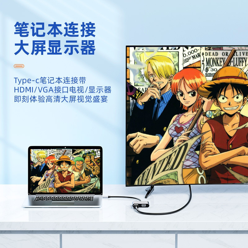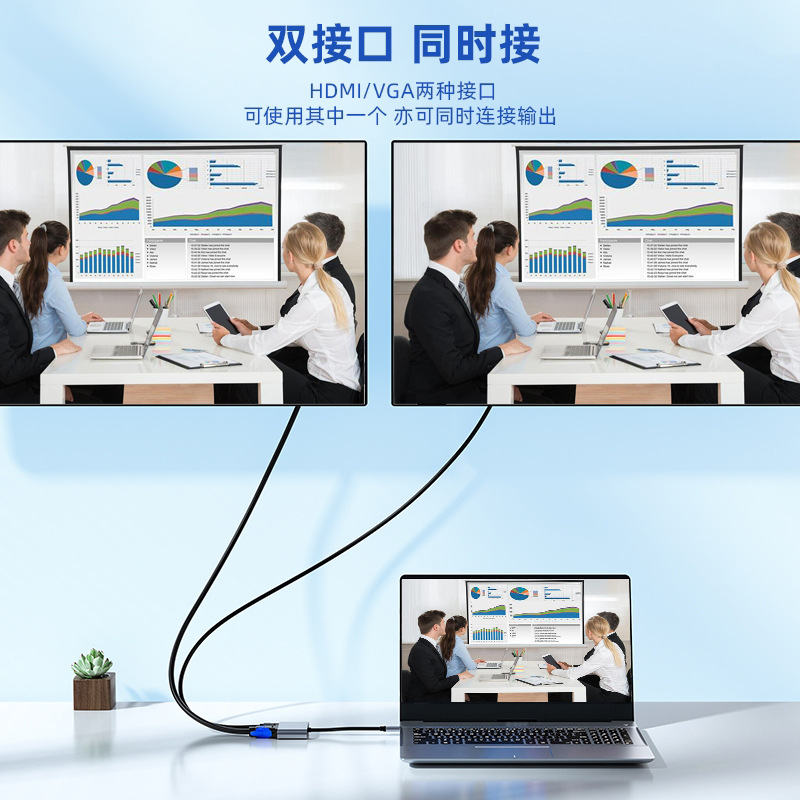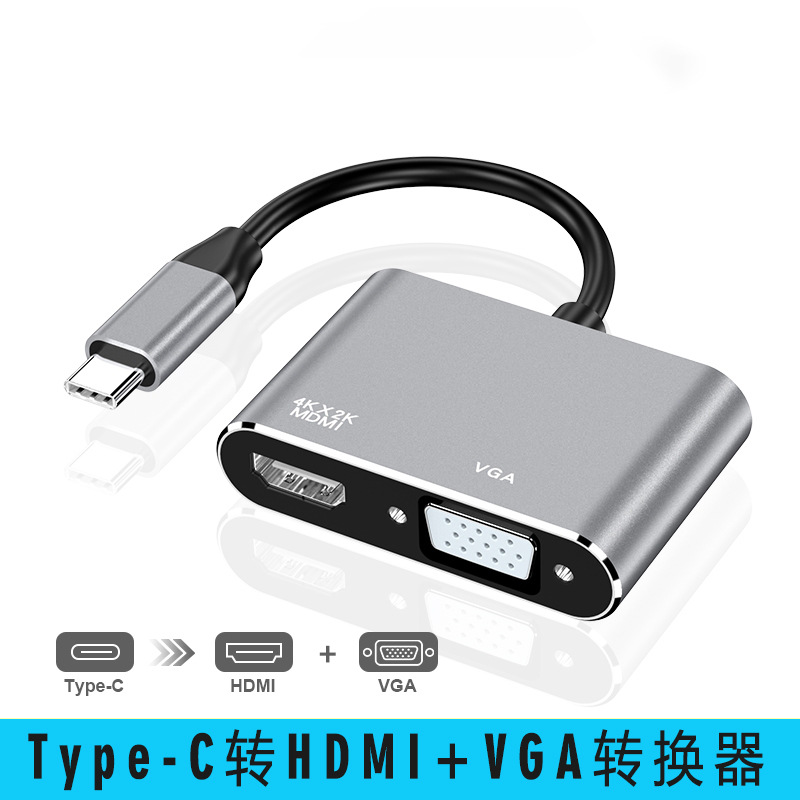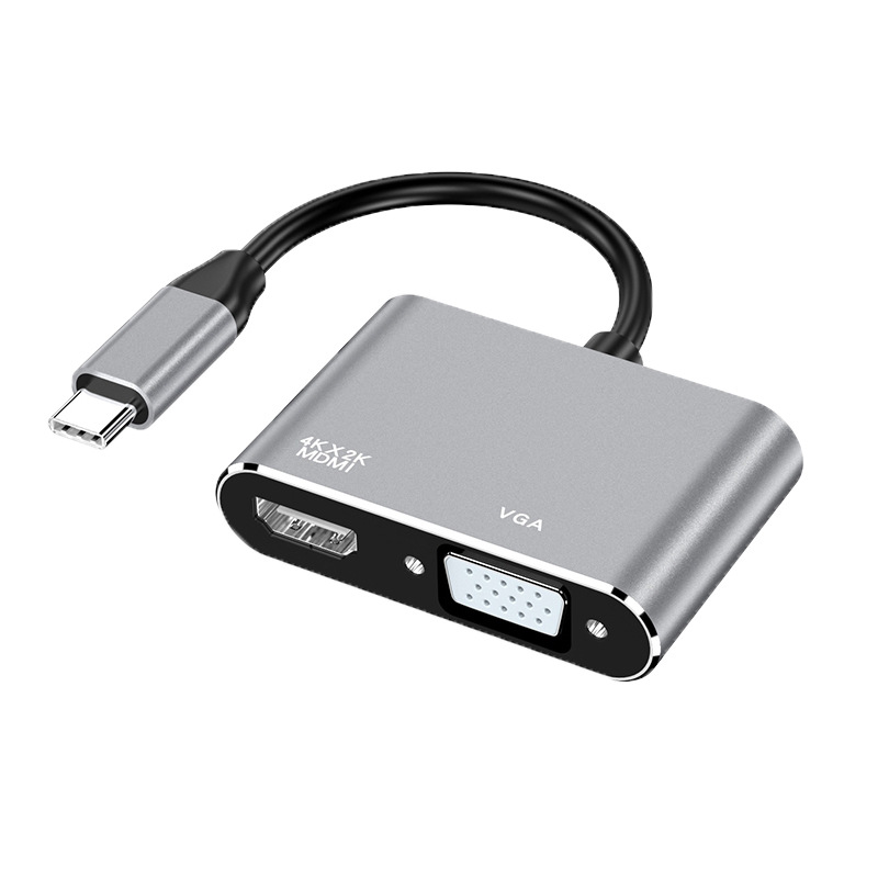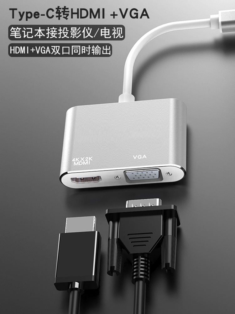 Type-C to HDMI + VGA 듀얼 인터페이스 지원 동시 출력 노트북 어댑터