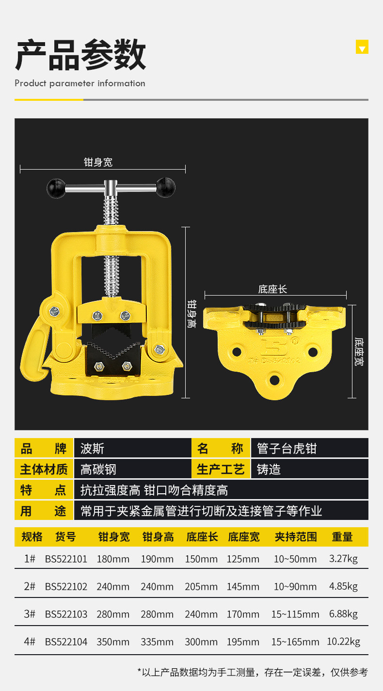 페르시아 무거운 파이프 압력 펜치 갠트리 펜치 파이프 클램프 프레임 압력 펜치 1 #2 #3 #4 # 파이프 벤치 바이스