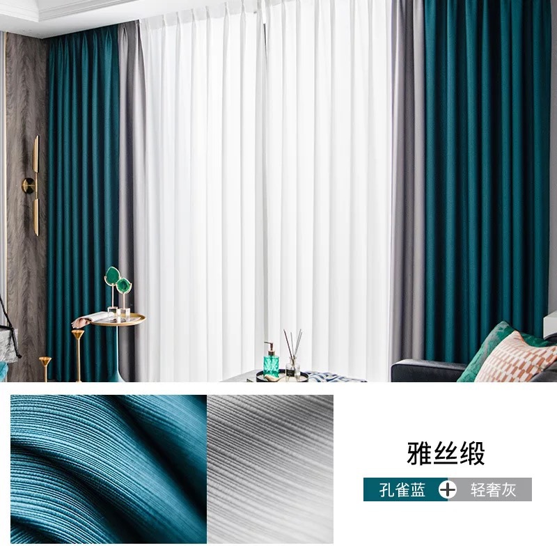 두꺼운 전체 차양 면 린넨 커튼 침실 태양 보호 거실 베이 창 현대 방음 호텔 홈 차양 커튼 패브릭