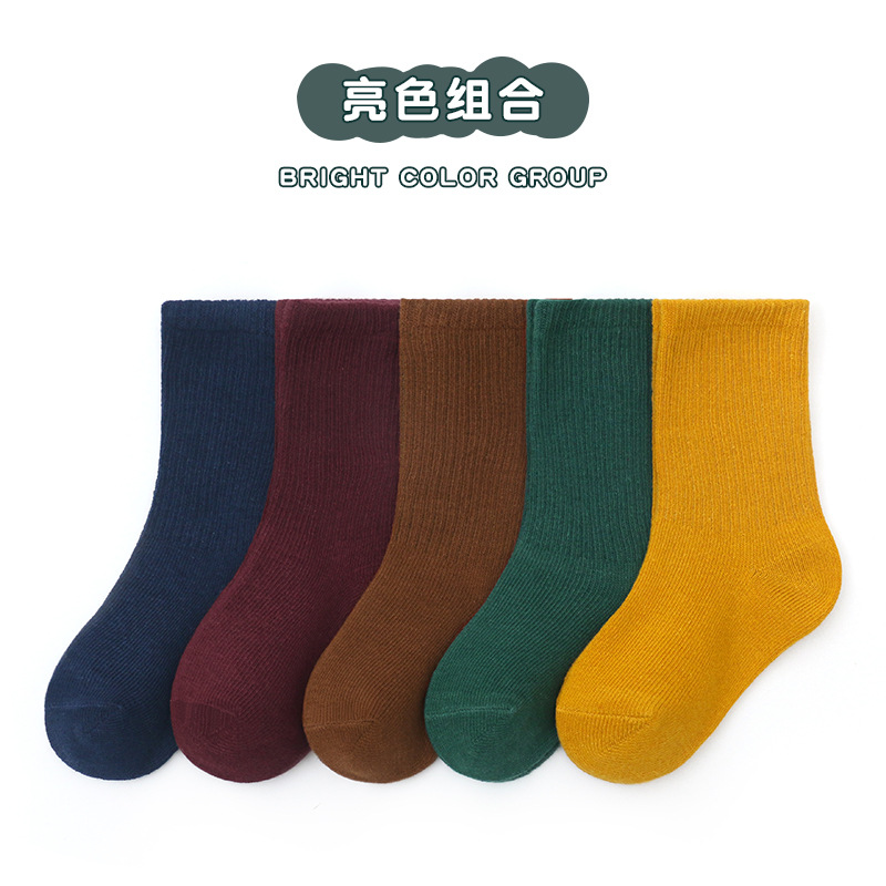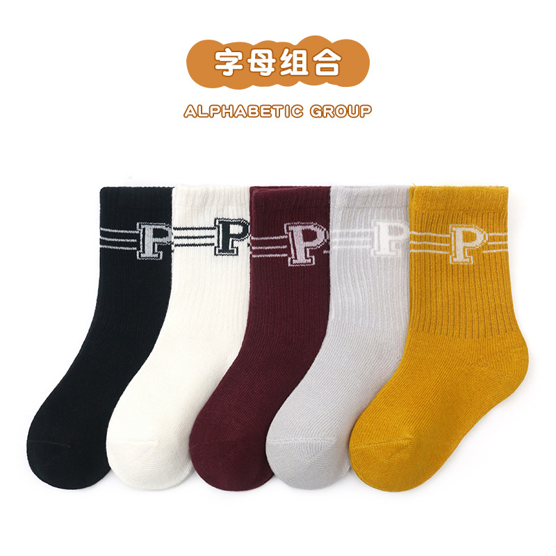 사계절용 고탄성 심플 남녀공용 아기 양말, 영유아, 중대형 어린이용 트렌디 양말, 5켤레 세트, 학생 양말스토어 가기