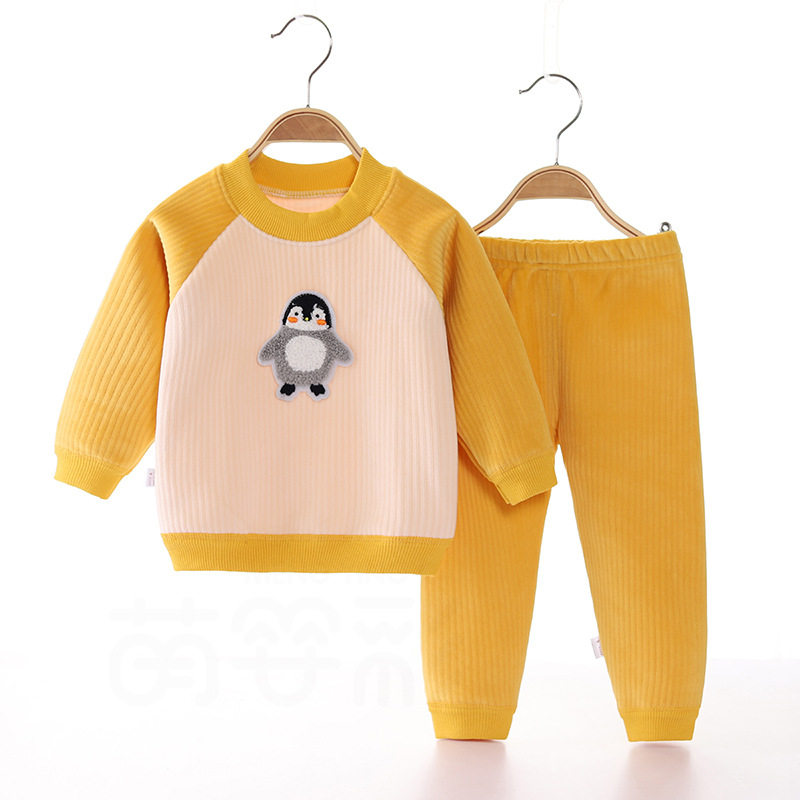 2023 새로운 가을 패션 브랜드 소년 아이들의 서양 스타일 잘 생긴 세트 기모 따뜻한 까마귀 세트스토어 가기