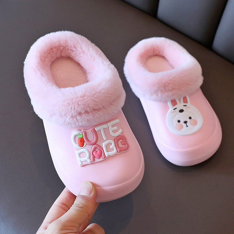 특별 제공 어린이 슬리퍼 가을, 겨울 새로운 방수 미끄럼 방지 소년 면화 슬리퍼 소녀 홈 실내 신발 플러시 슬리퍼