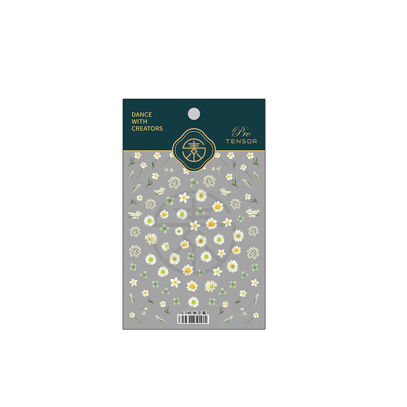 TENSOR 새로운 프로세스 네일 아트 스티커 프로 얇은 투명 접착 네일 스티커 얇은 터프 스티커 가을 국화 TS749