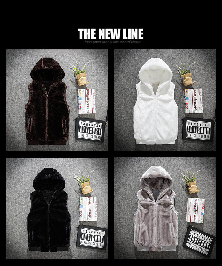 가을 겨울 플러시 조끼 남성용 한국 스타일 트렌디하고 멋진 코트 대형 사이즈 청소년용 조끼 커플용 개성 있는 따뜻한 조끼