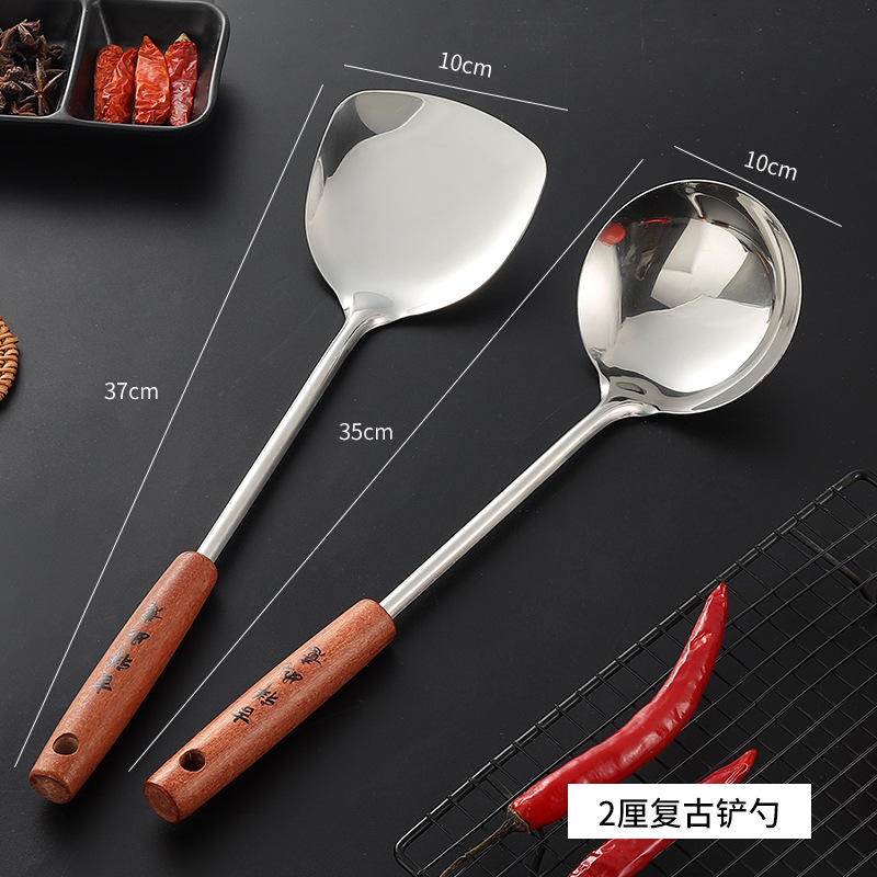 두꺼운 비자성 스테인레스 스틸 주걱 주방 나무 손잡이 요리 주걱 요리 스푼 시리즈 9.9 위안 가게 마구간스토어 가기