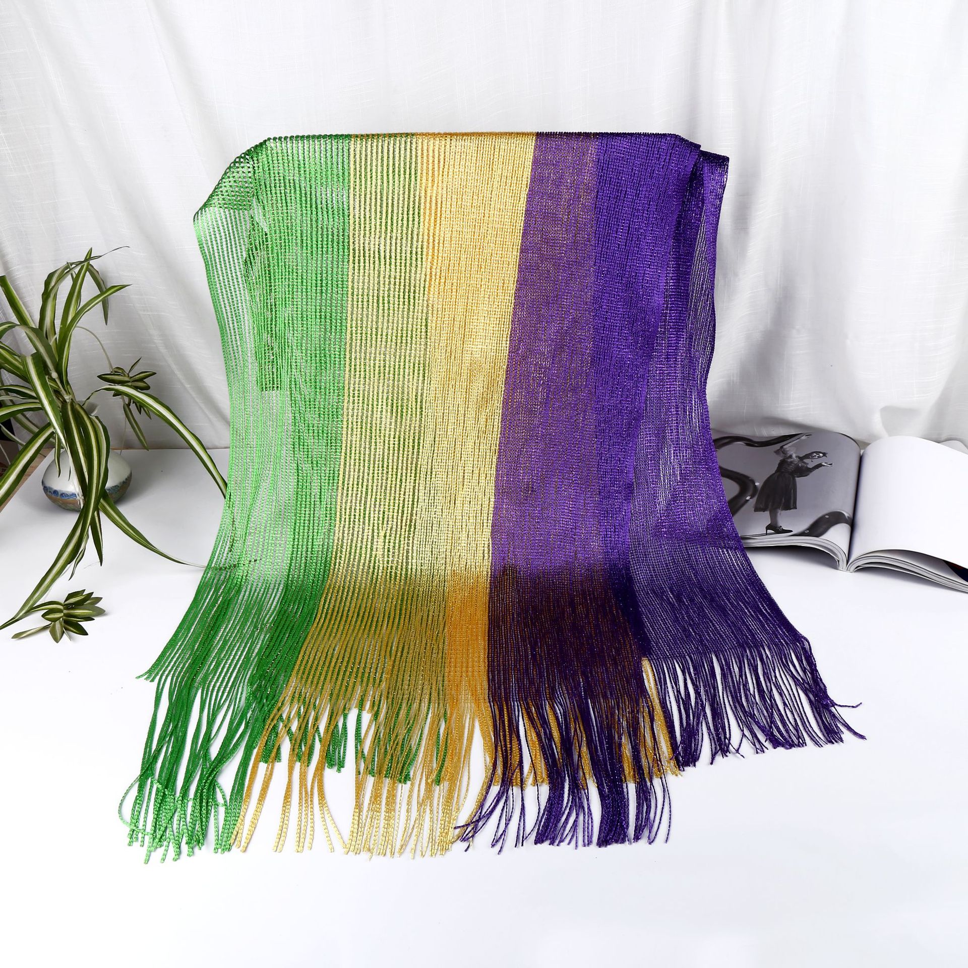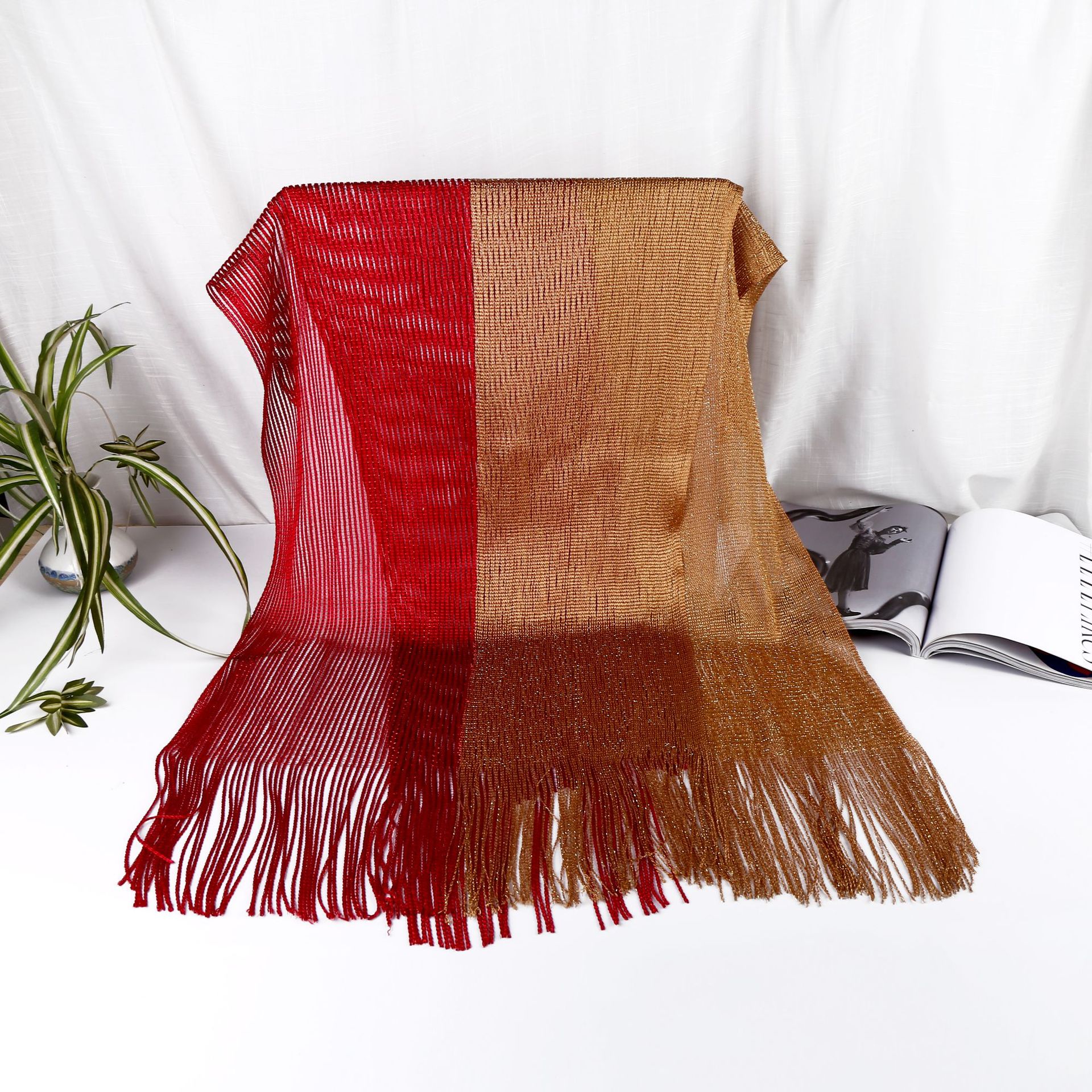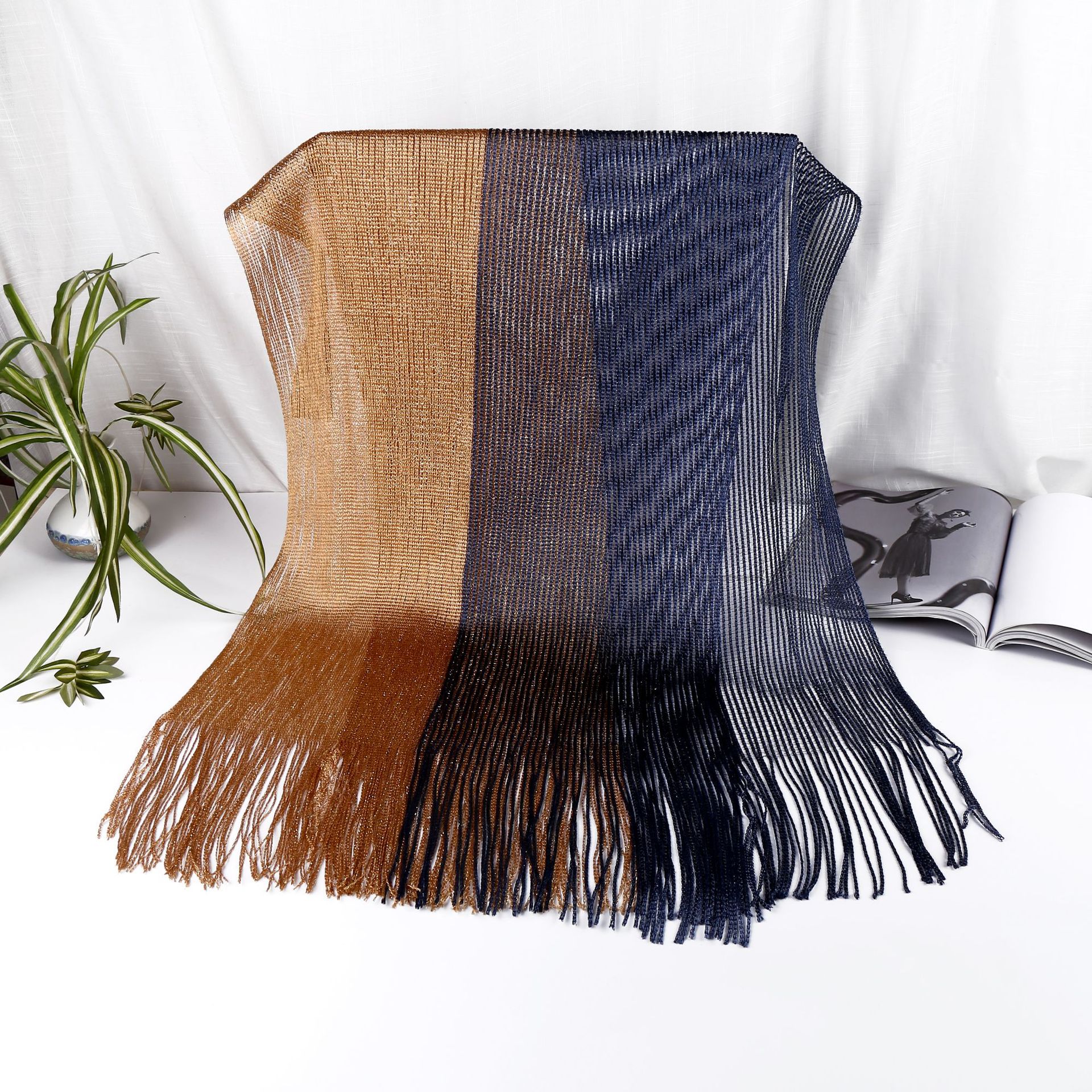 카니발 가을과 겨울 올매치 밝은 실크 스트라이프 폴리 에스테르 숄 얇은 거즈 폴리 에스테르 밝은 실크 줄무늬 프린지 스카프