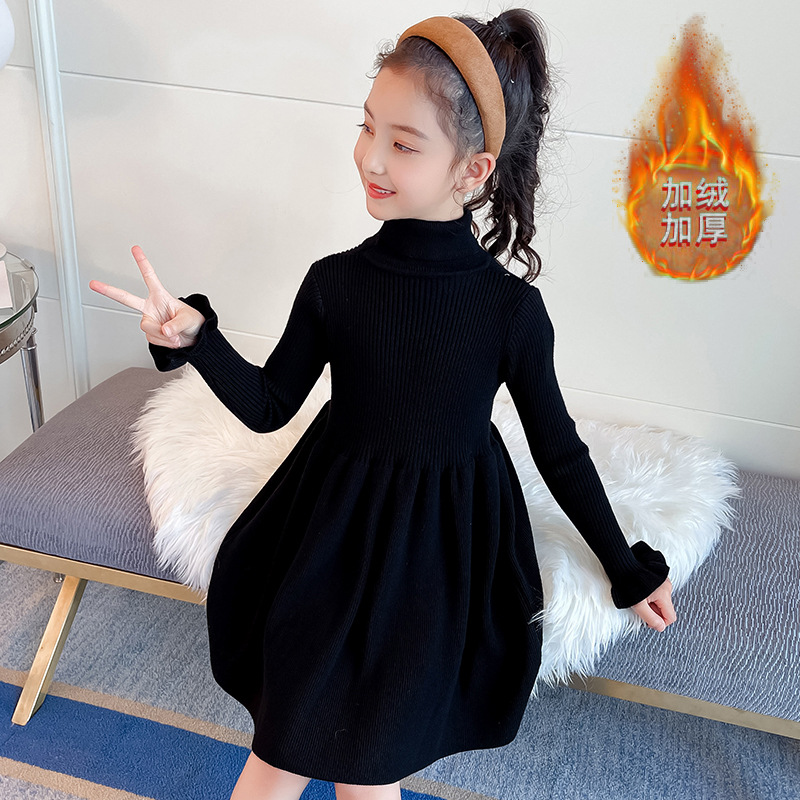여아 스웨터 원피스 2021 새로운 가을과 겨울 기모 두꺼운 어린이 소녀 세련된 공주 원피스 유행