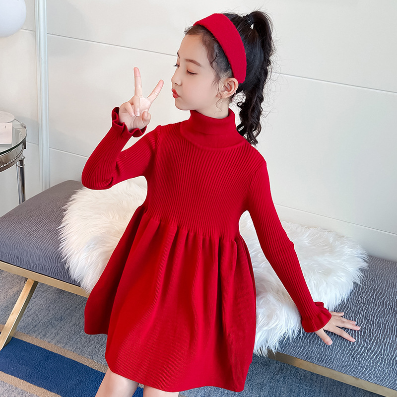 여아 스웨터 원피스 2021 새로운 가을과 겨울 기모 두꺼운 어린이 소녀 세련된 공주 원피스 유행스토어 가기