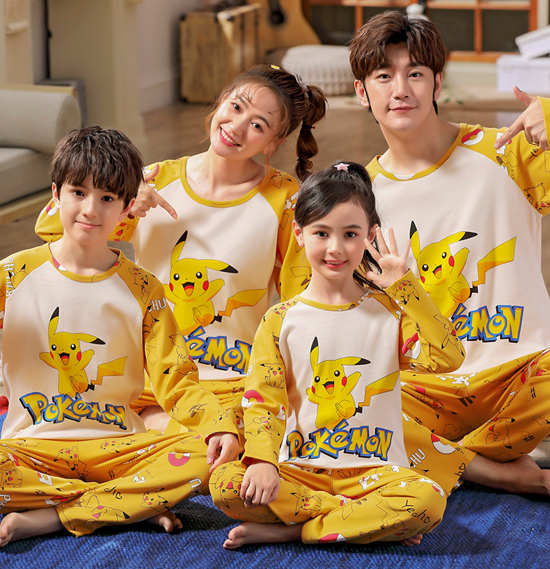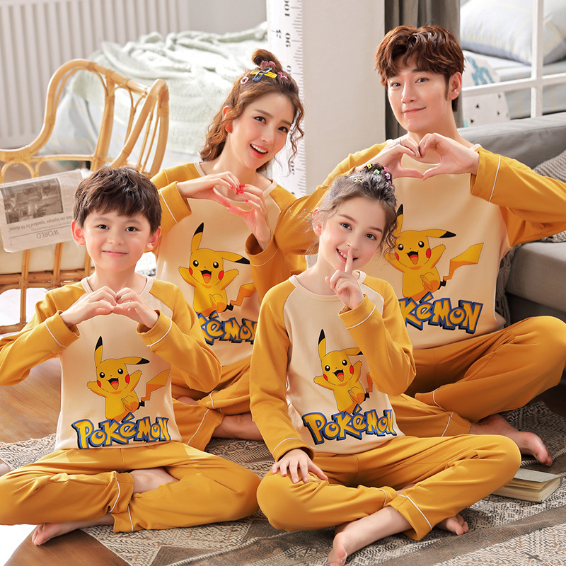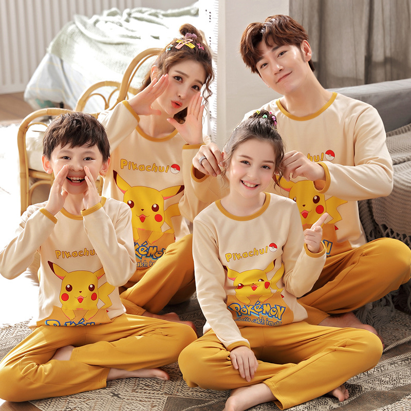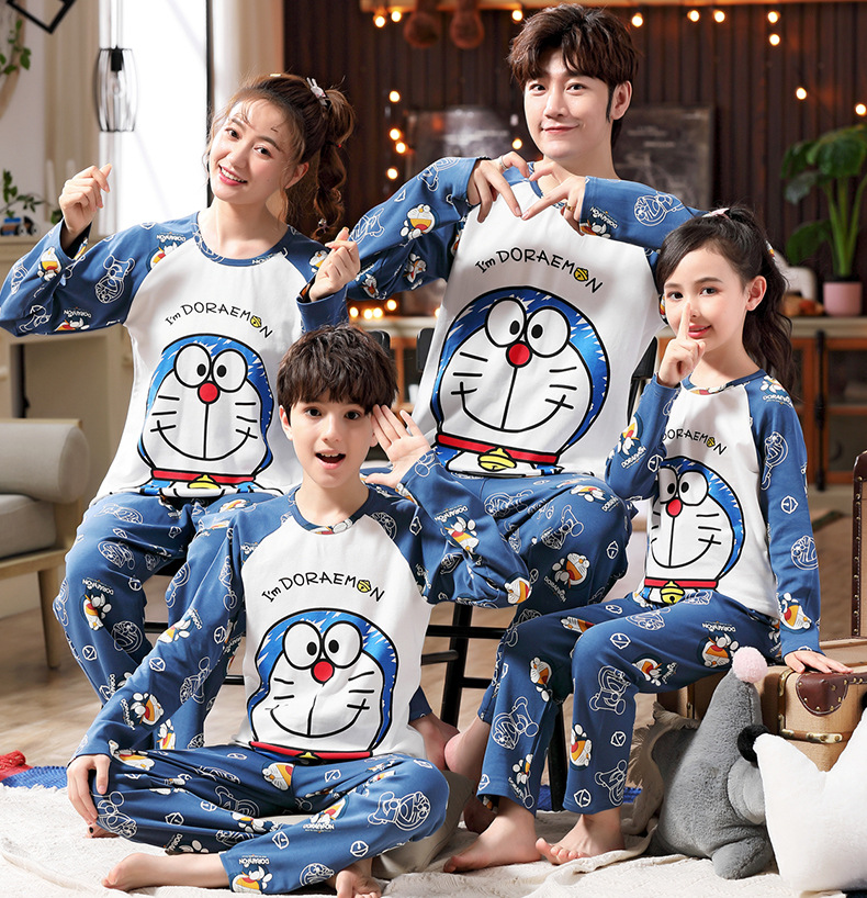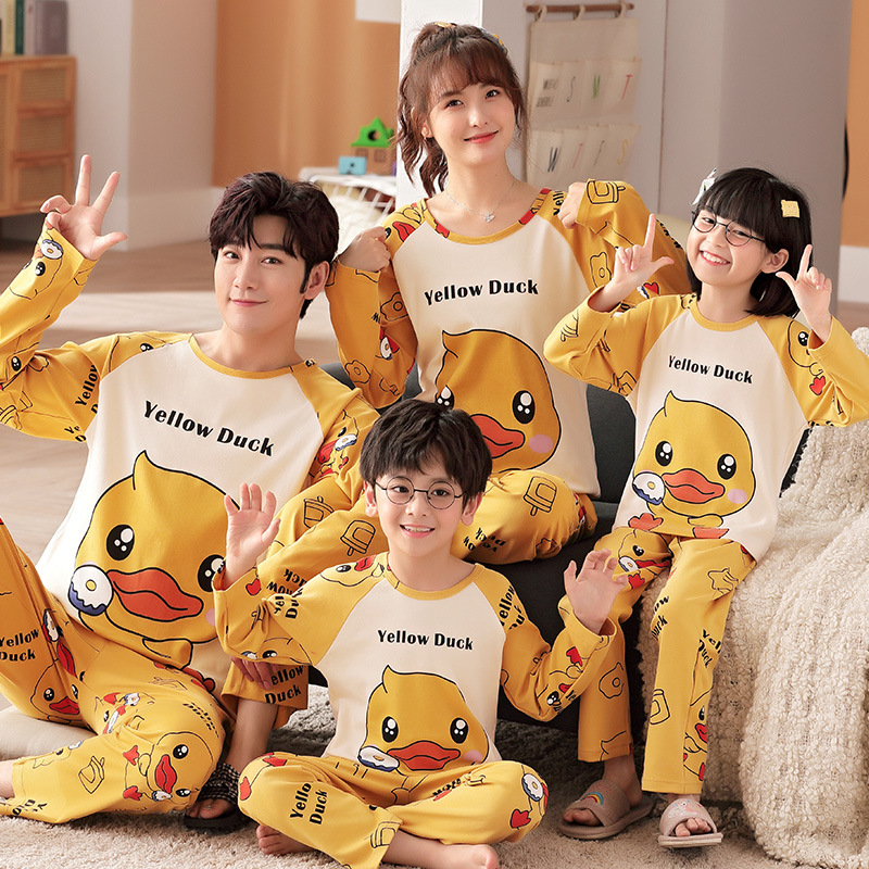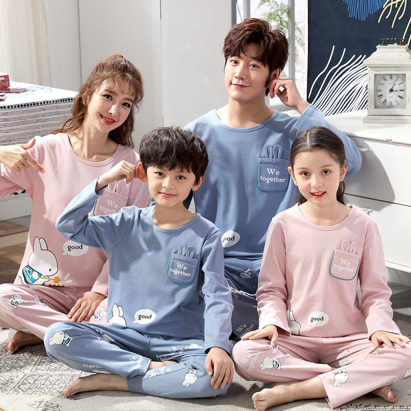 어린이의 큰 어린이 잠옷 가을 긴 소매 면 세트 세 옷의 가족 소년과 소녀 잠옷 부모-자식 가정 옷