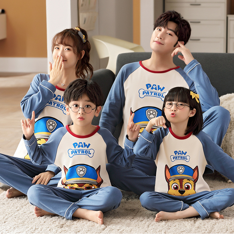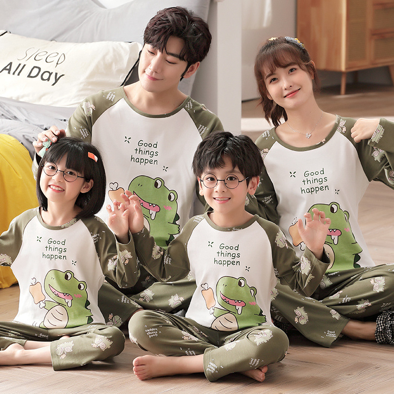 어린이의 큰 어린이 잠옷 가을 긴 소매 면 세트 세 옷의 가족 소년과 소녀 잠옷 부모-자식 가정 옷스토어 가기