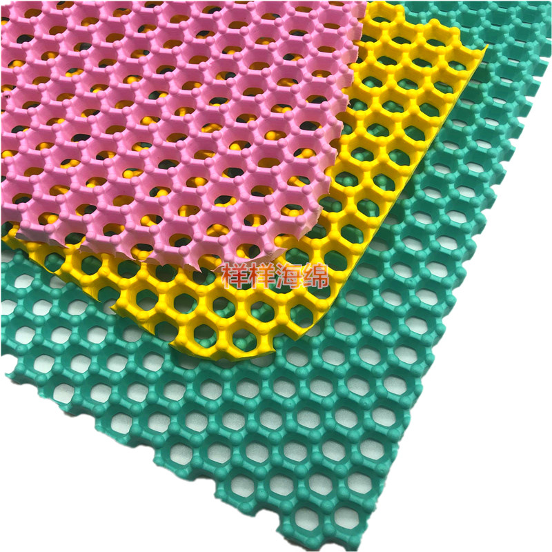 材质:上下一体的蜂窝状EVA,采用四边全包式缝纫工艺。