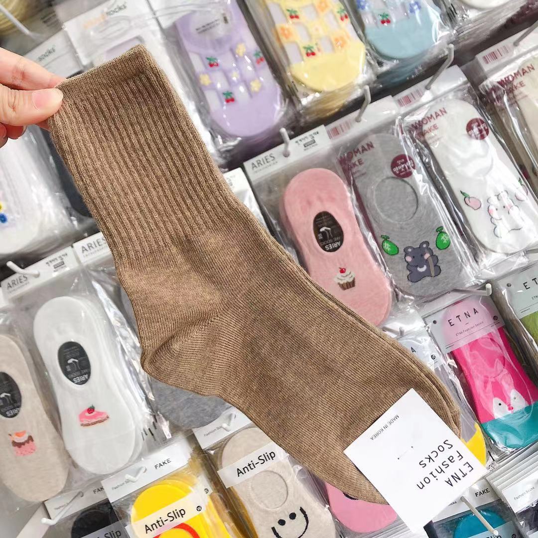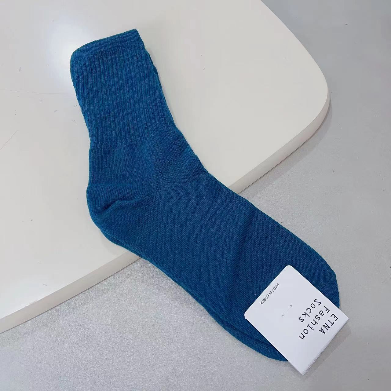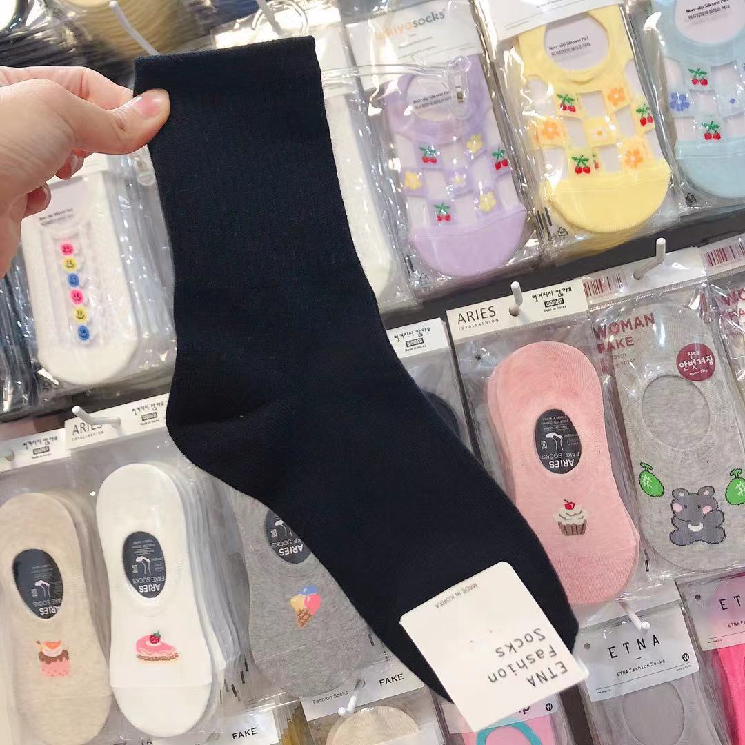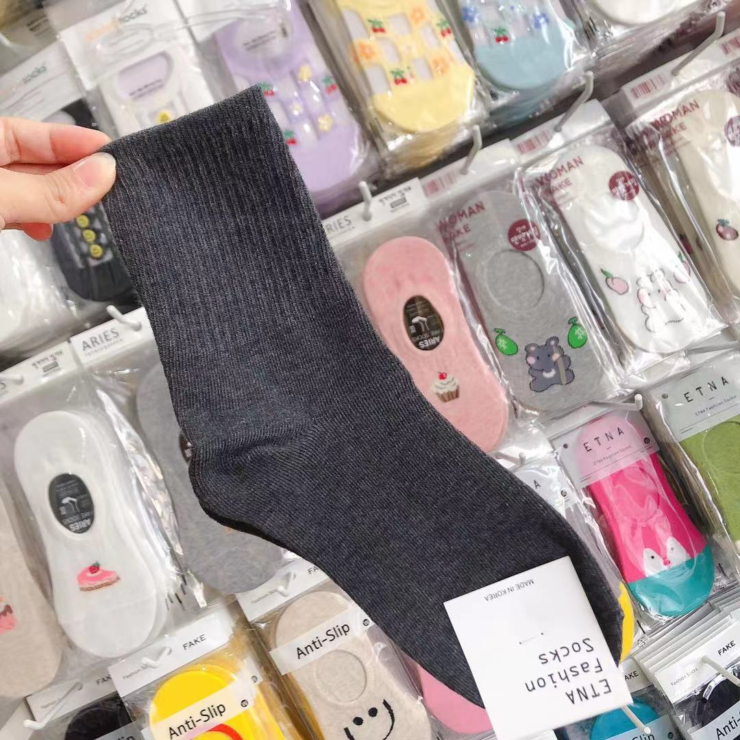 한국 양말 ETNA 가을과 겨울 두꺼운 라인 양말 허리 단색 면 양말 흑백 회색 캐주얼 여성 양말 미드 튜브 양말스토어 가기