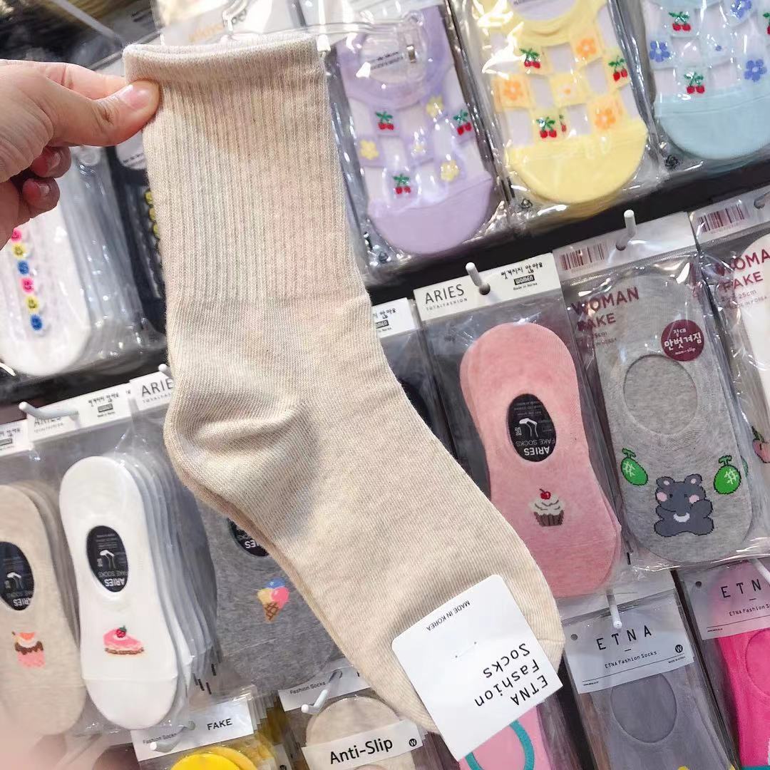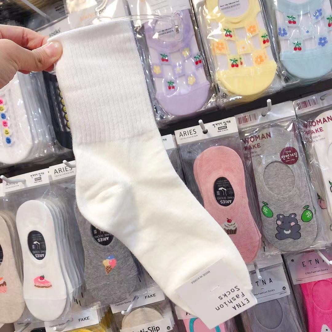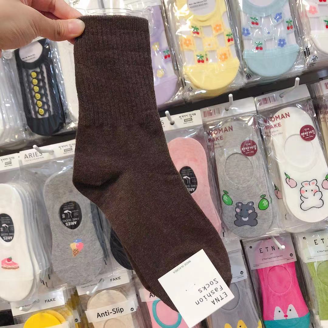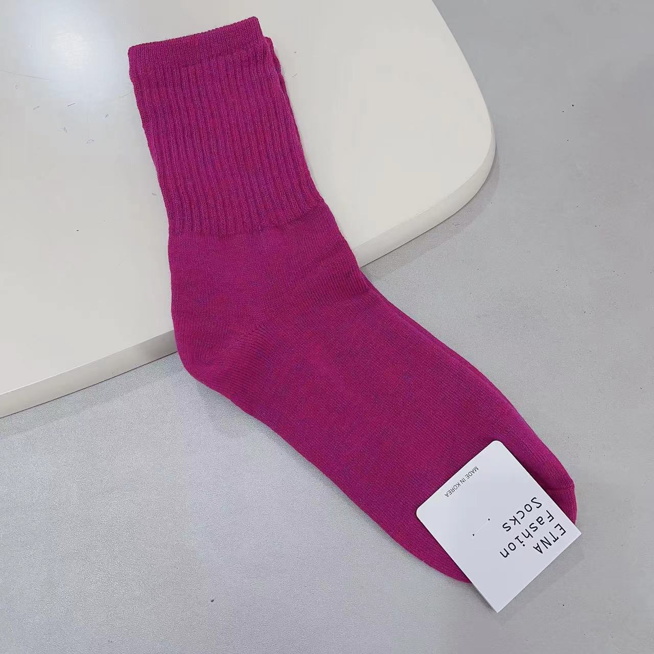 한국 양말 ETNA 가을과 겨울 두꺼운 라인 양말 허리 단색 면 양말 흑백 회색 캐주얼 여성 양말 미드 튜브 양말스토어 가기