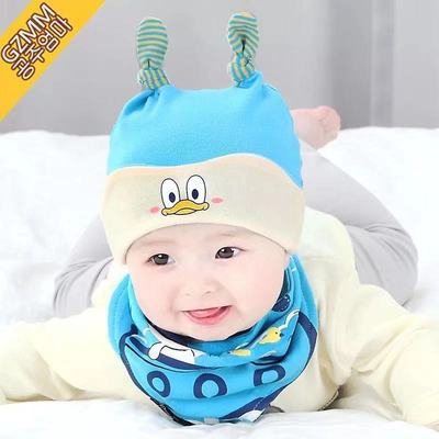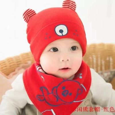 婴儿帽子秋冬季纯棉女宝宝可爱儿童帽毛线护耳帽围巾男童冬天针织