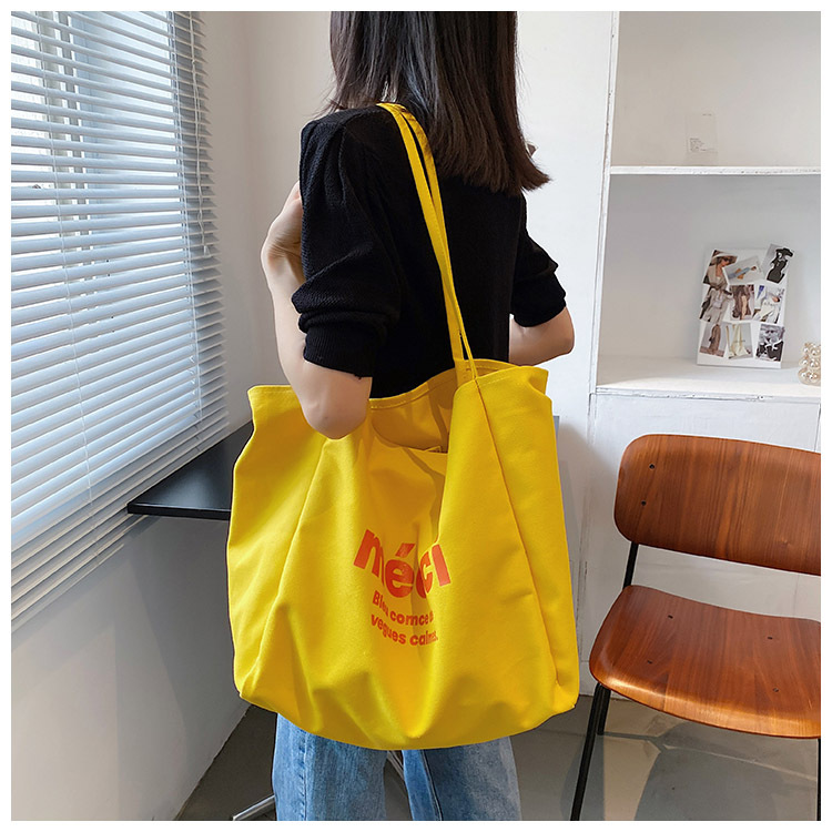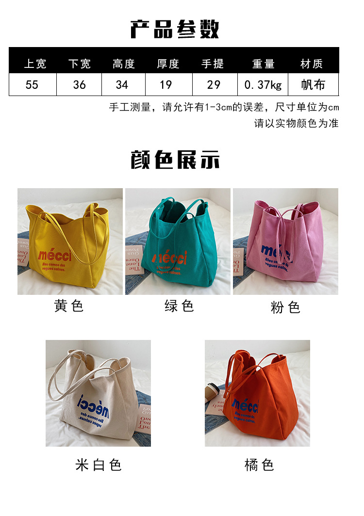 캔버스 가방 여성용 재고 있음 한국 스타일 대용량 레이지 스타일 레터링 학생 숄더백 토트백 문예풍 핸드백스토어 가기