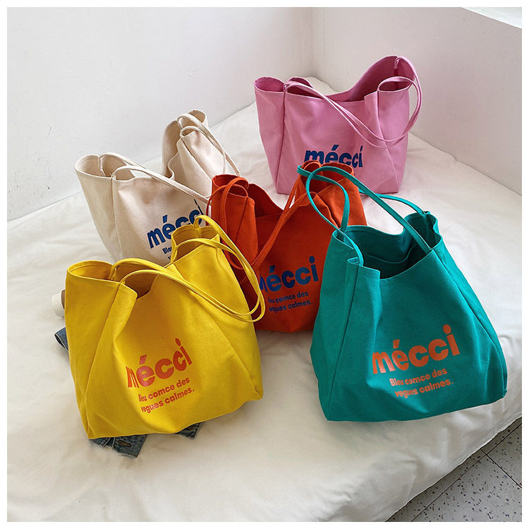 캔버스 가방 여성용 재고 있음 한국 스타일 대용량 레이지 스타일 레터링 학생 숄더백 토트백 문예풍 핸드백