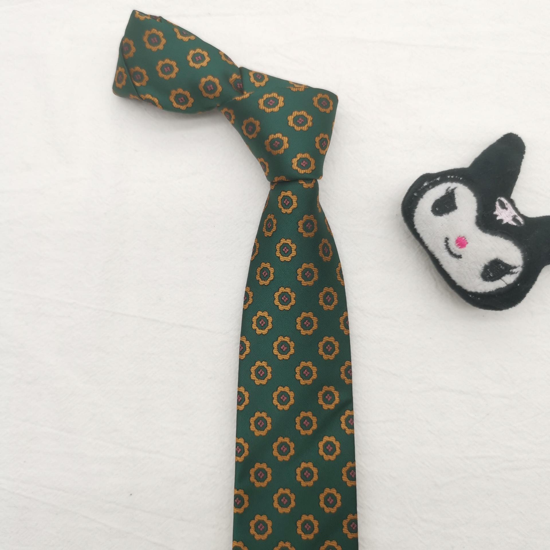 손 넥타이 여자의 여름 jk 빈티지 원사 염색 커피 다크 그린 황금 꽃 dk 학술 스타일 7cm 남자의 유행 장식