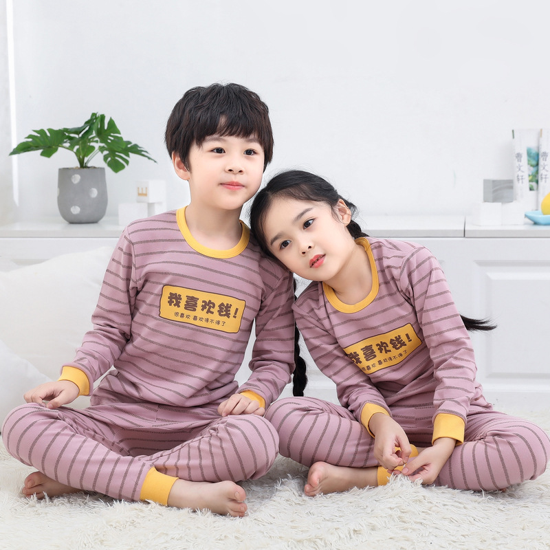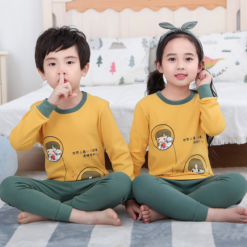 새로운 가을과 겨울 면 어린이 가정 옷 소년 소녀 세트 재고 위한 투피스 열 속옷스토어 가기