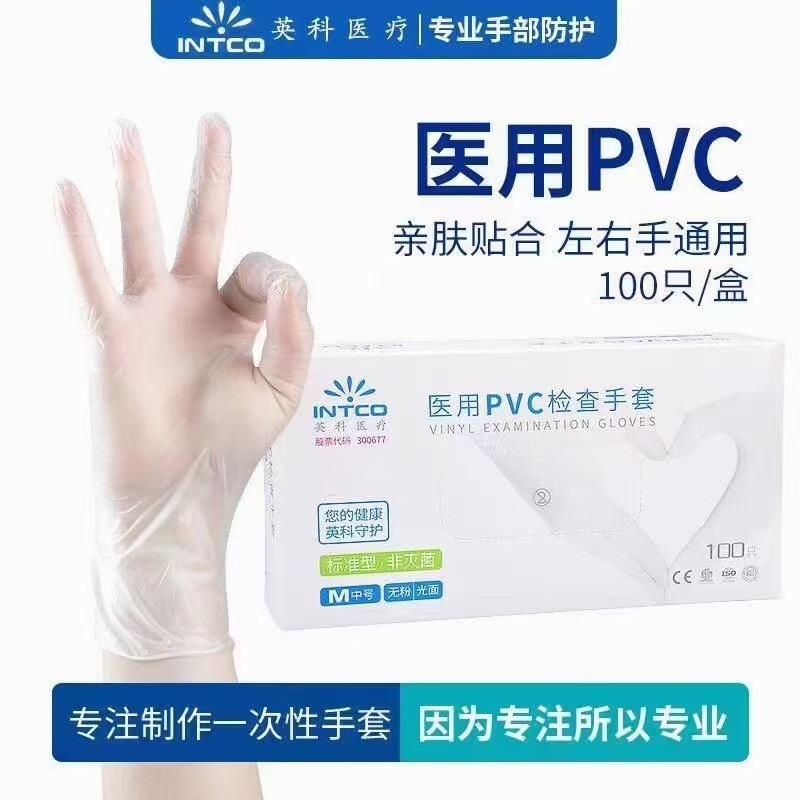 재고 Yingke 일회용 PVC 검사 장갑 주방 분말 프리 식품 실험 보호 장갑 박스 100 개