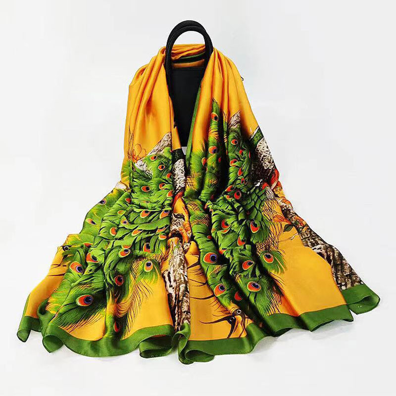공작 오픈 스크린 리 브로케이드 새틴 프린트 스카프 여성 봄과 여름 패션 스카프 사진 선 스크린 목도리 비치 타월 도매스토어 가기