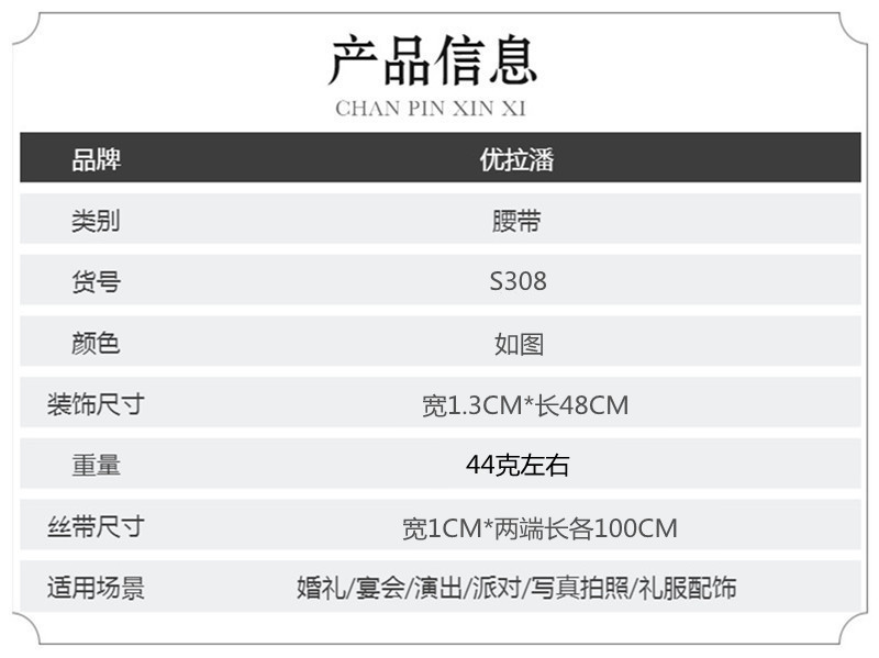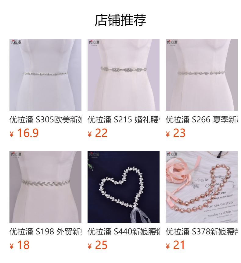 유라판 S308 고급 수입 웨딩드레스 액세서리 유럽 및 미국 신부 웨딩 장식 허리띠스토어 가기
