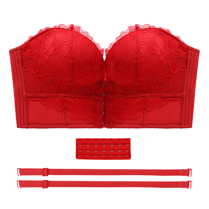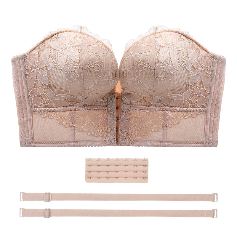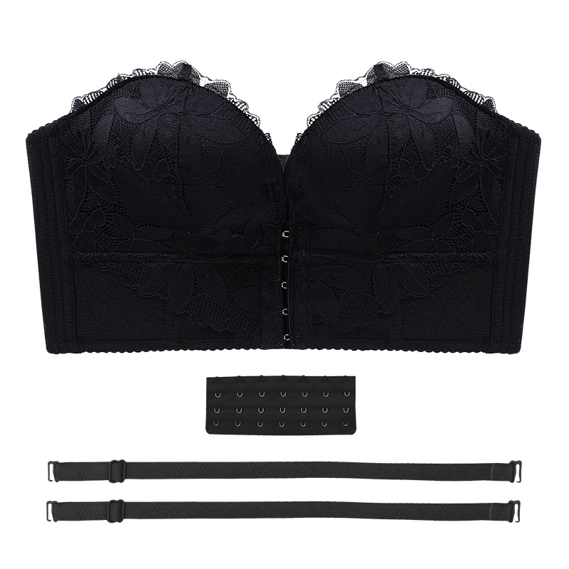 봄여름 작은 가슴용 앞뒤 버튼식 손바닥 모양 모아주는 노와이어 브라, 사이드 라인 높이 조절 가능, 스트랩 없는 여성 속옷 도매스토어 가기