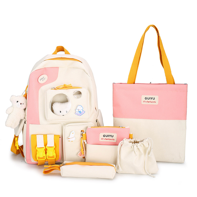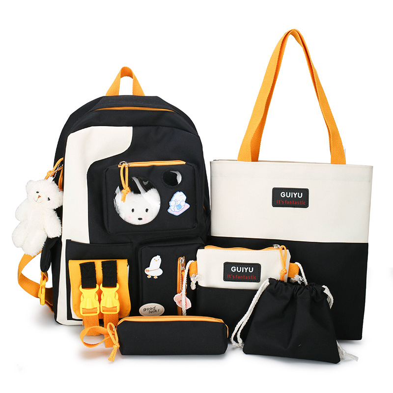 2023 새로운 한국식 학생 패션 책가방 중학교 캠퍼스 대학생 5 피스 책가방 백팩스토어 가기