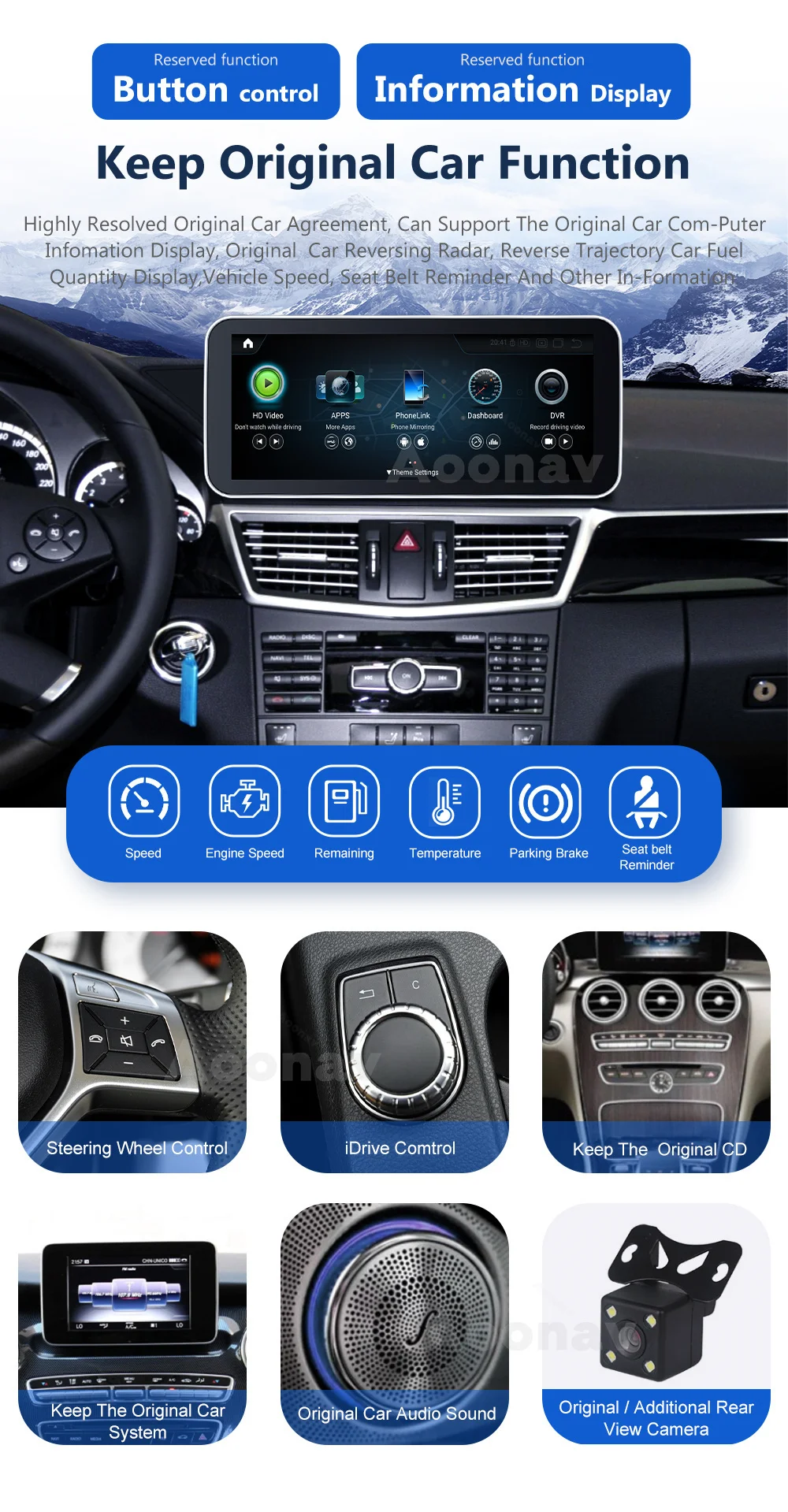 Android 导航就像是 Android 手机。您可以通过软件商店中选择的导航应用程序安装 Android 应用程序和 GPS 导航。它还保留了大多数 OEM 功能。其他配件,如DVR、OBD、后置摄像头、360°摄像头等。