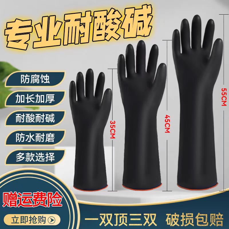 두꺼운 노동 보호 산업 확장 산 및 알칼리 방지 고무 장갑 미끄럼 방지 라텍스 장갑 손 수생 그림 화학스토어 가기