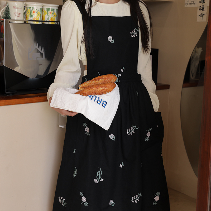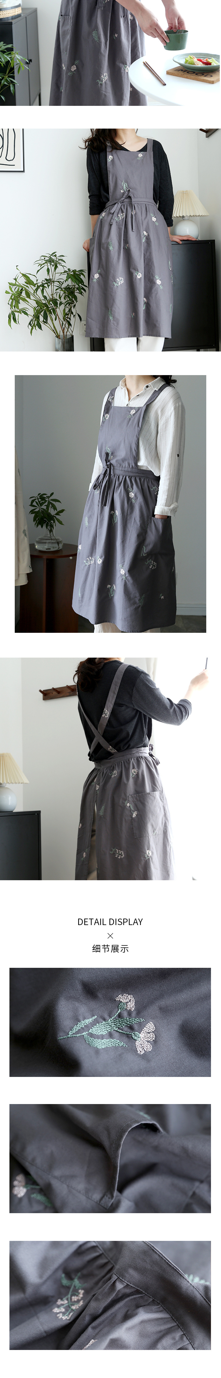 2024 새로운 한국어 스타일 수 놓은 앞치마 국경 순수 면화 발수 꽃 넥타이 포켓 앞치마 도매스토어 가기