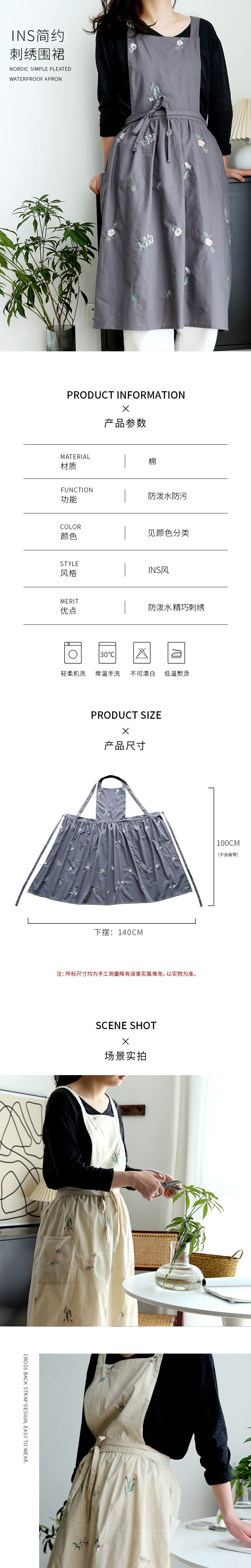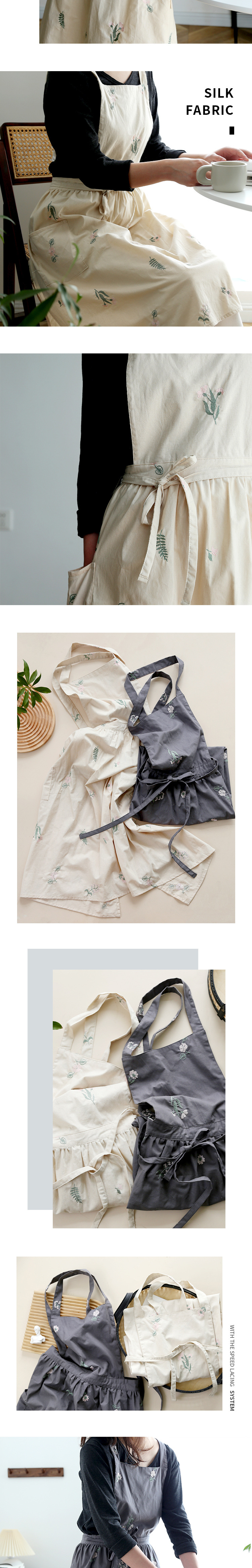 2024 새로운 한국어 스타일 수 놓은 앞치마 국경 순수 면화 발수 꽃 넥타이 포켓 앞치마 도매