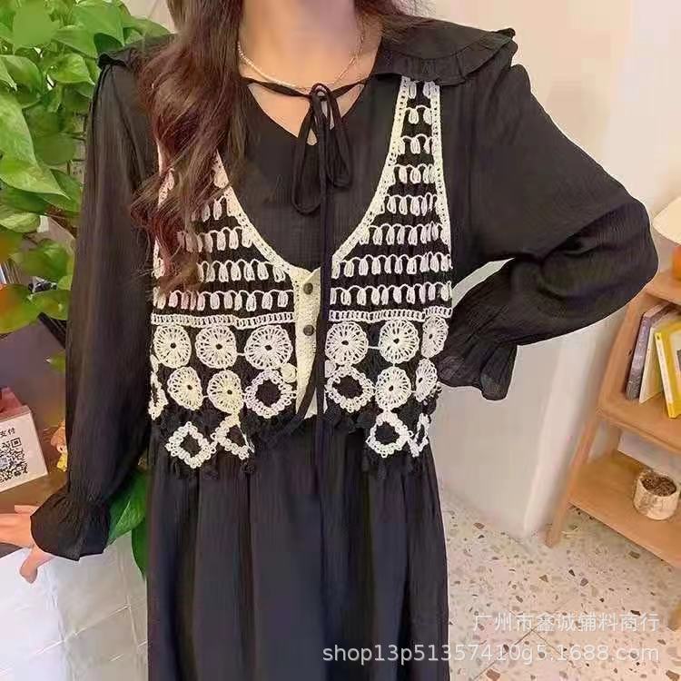 프랑스 스타일 레트로 니트 샤넬 스타일 조끼 여성용 중공 얇은 모든 경기 대학 스타일 스택 조끼 외부 탑스토어 가기