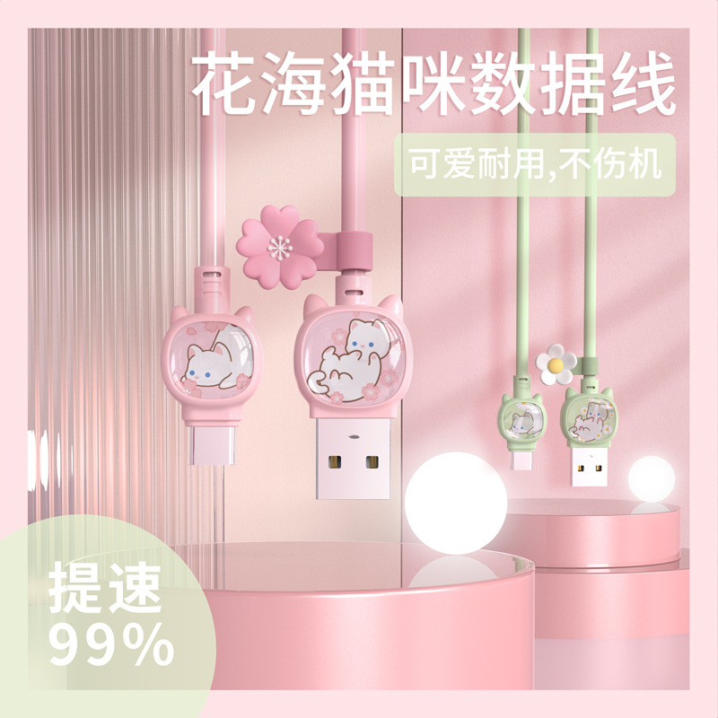 Huahai 고양이 데이터 라인 액체 실리콘 라인 1 m typec 휴대 전화 고속 충전 라인 3A 자동차 선물에 적합스토어 가기