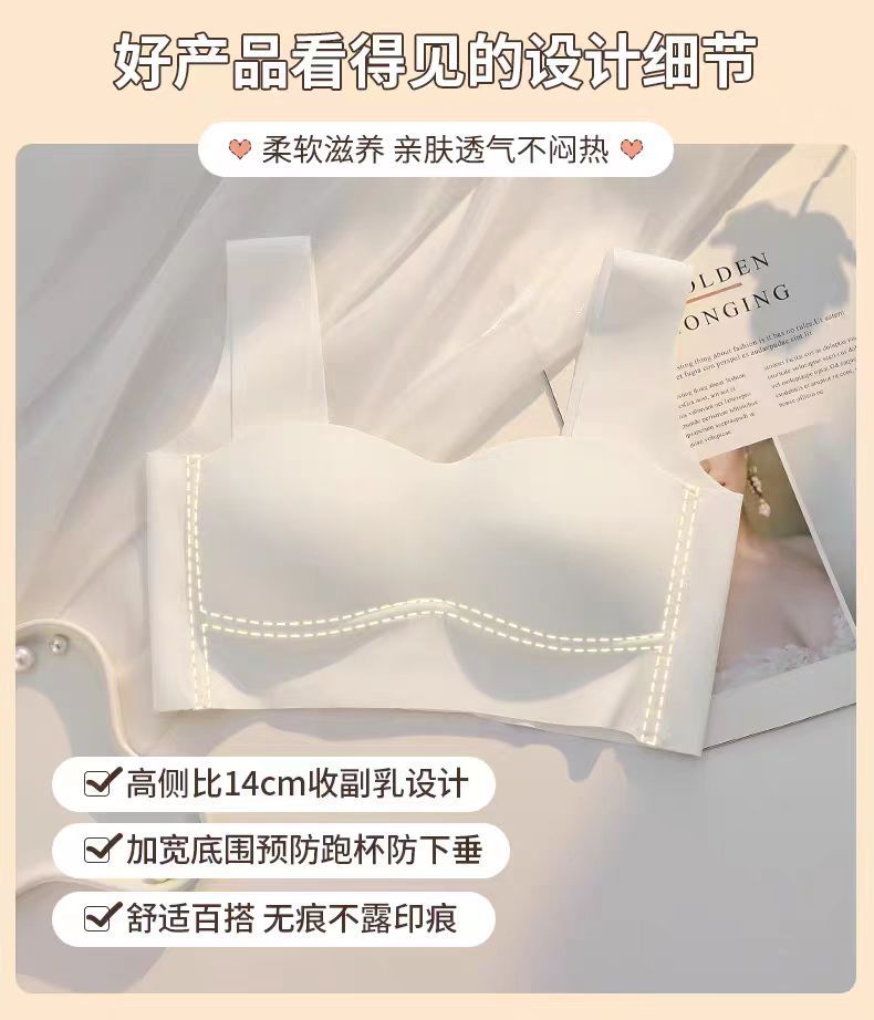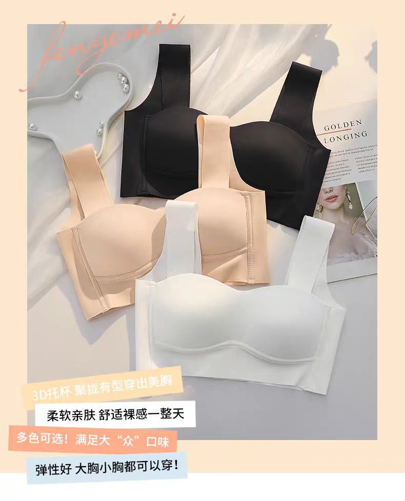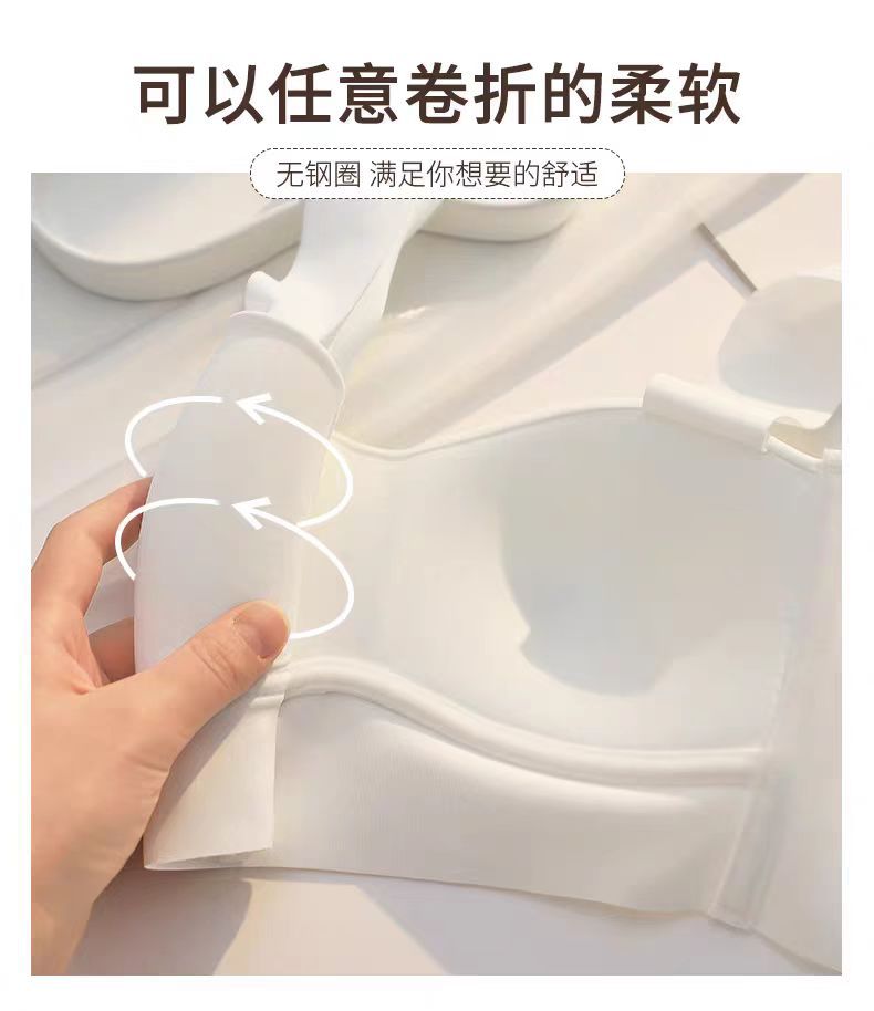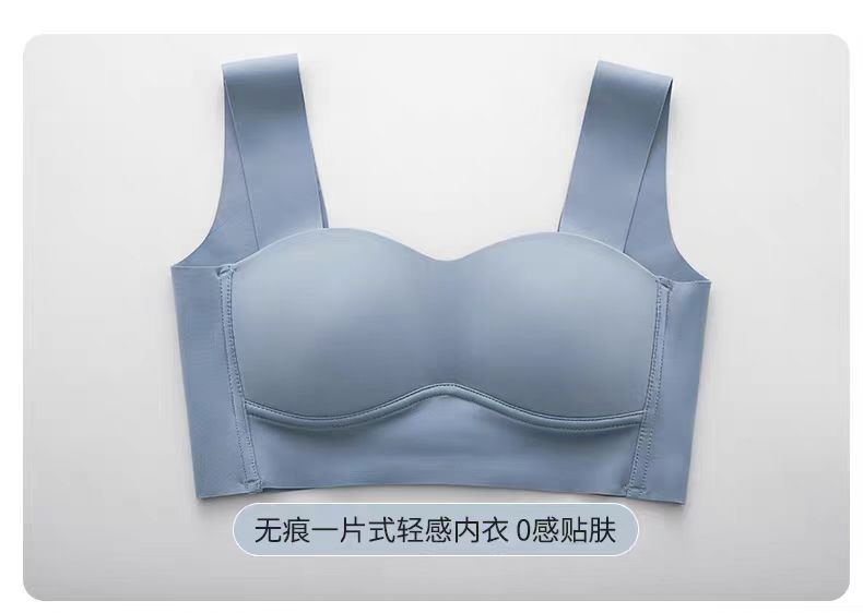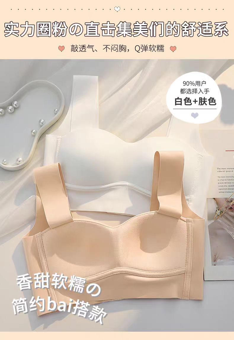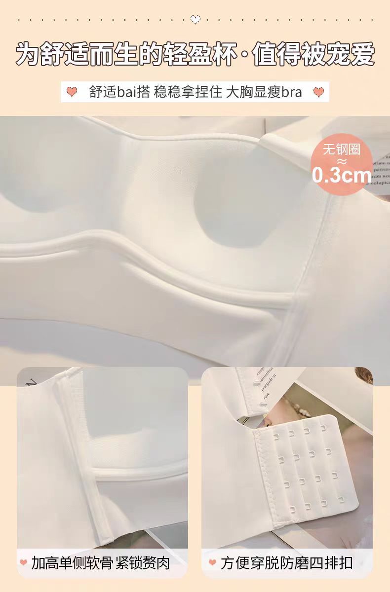 틱톡 얇은 여름용 바다소금 원피스 무지 소녀용 노와이어 노라인 물결무늬 앞후크 브라