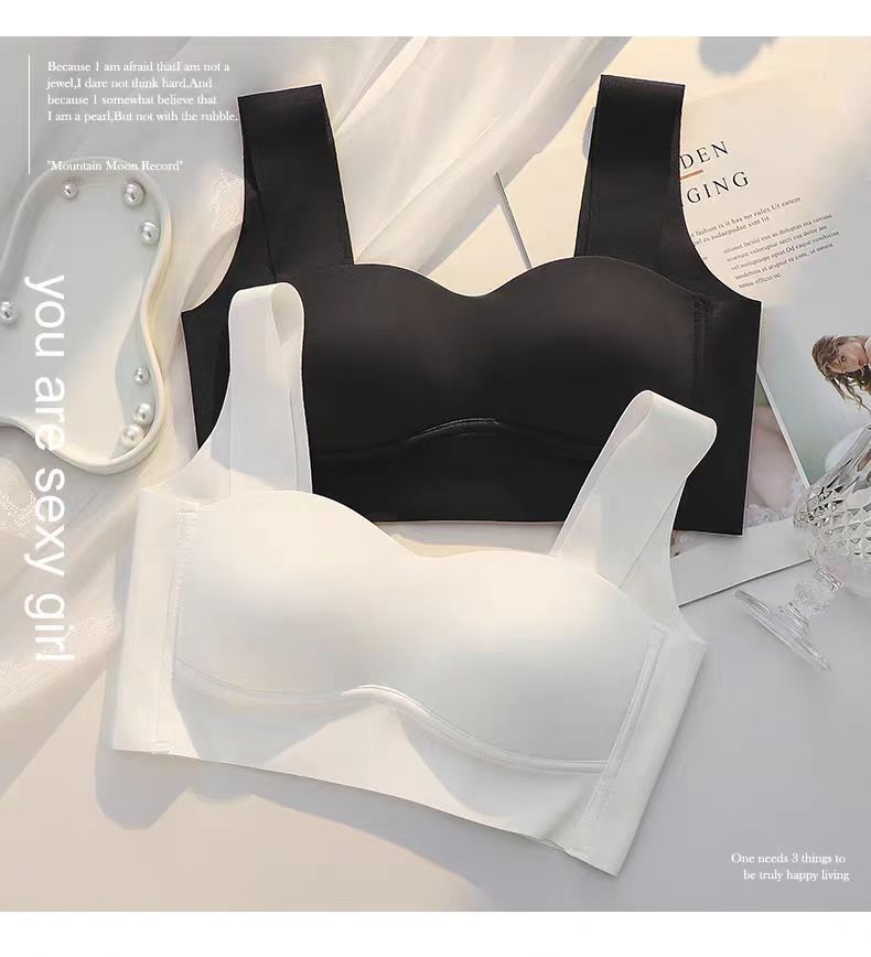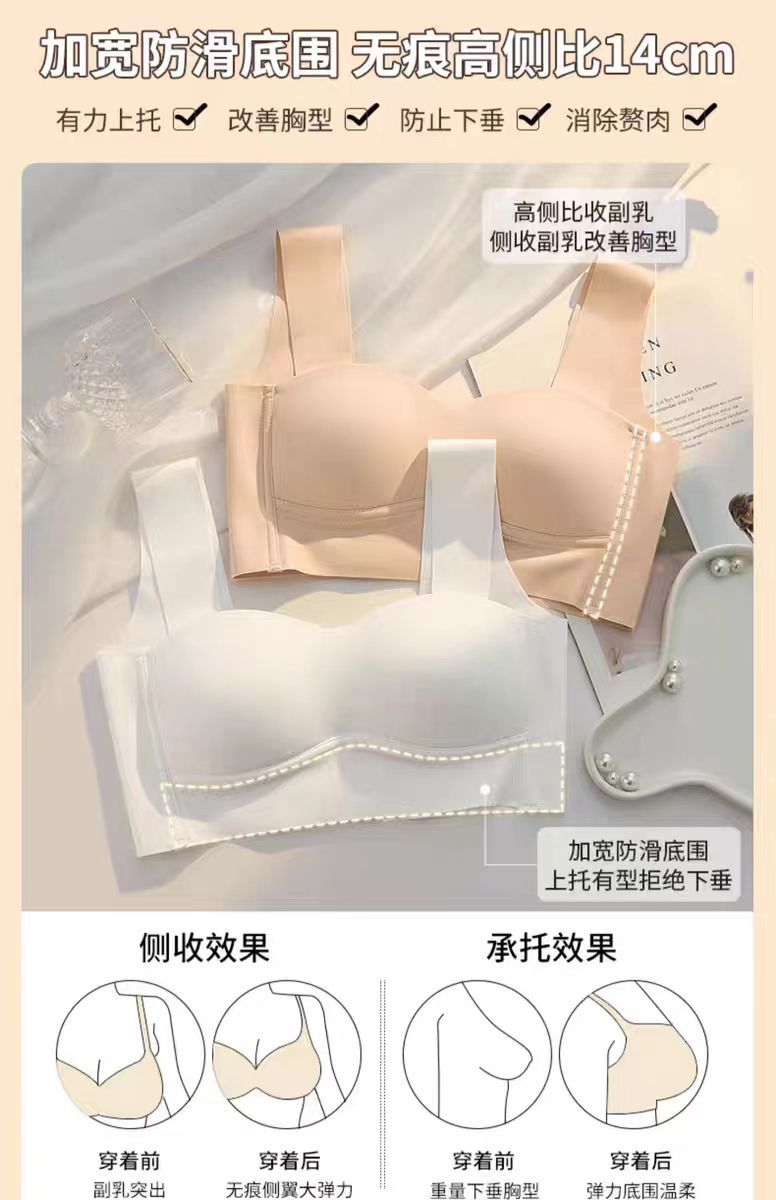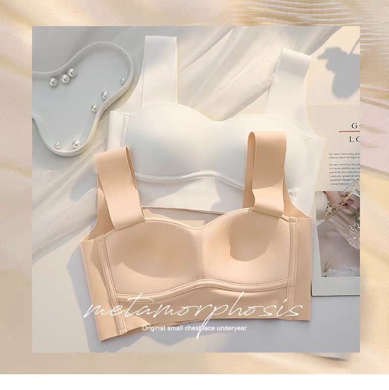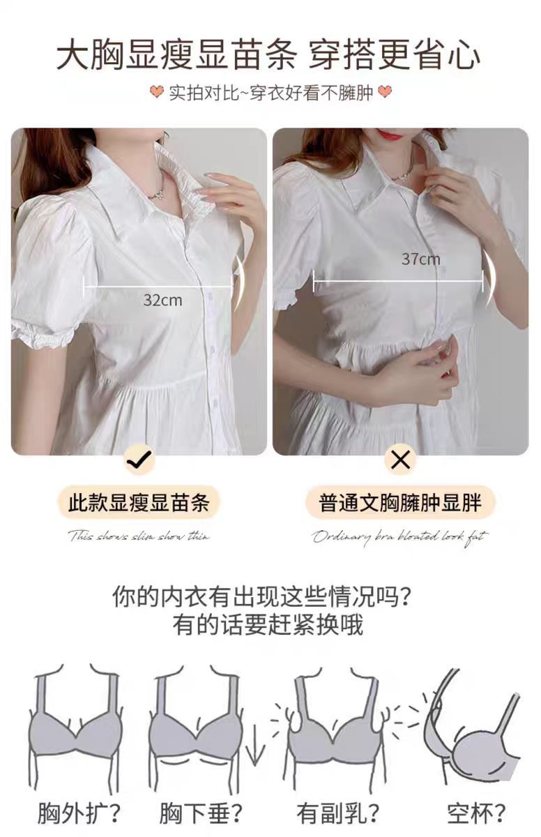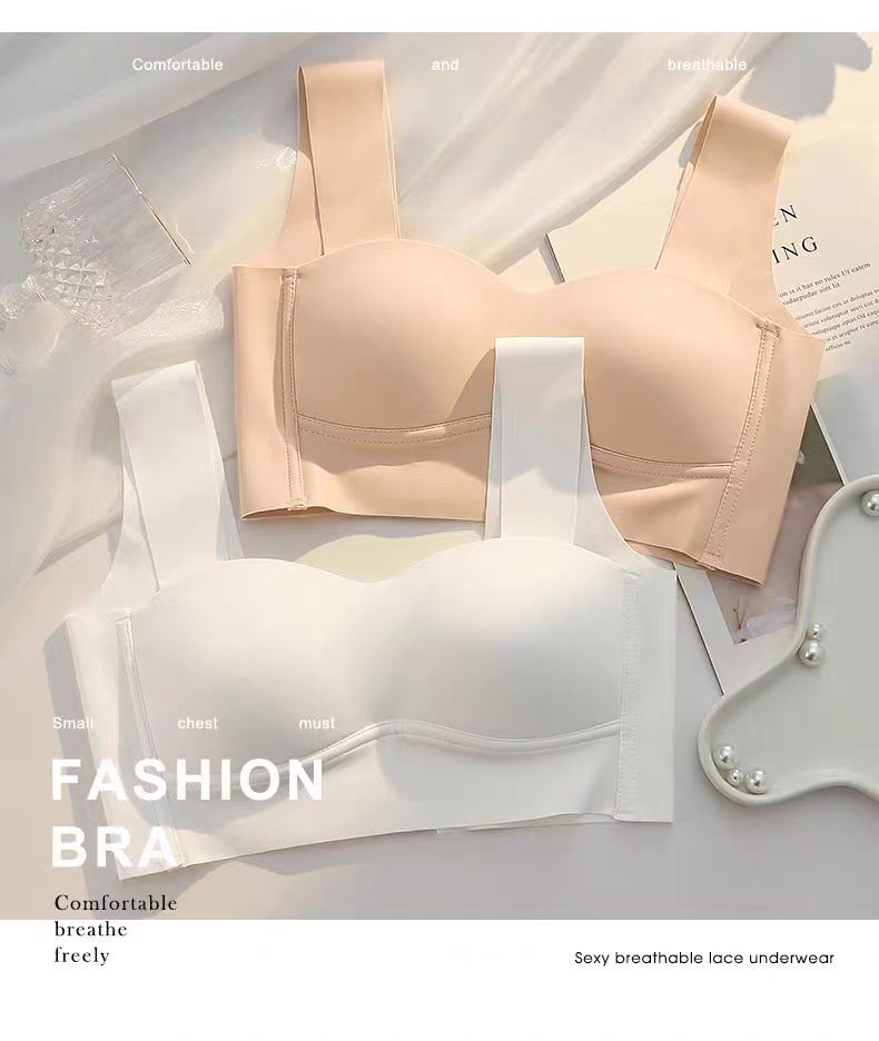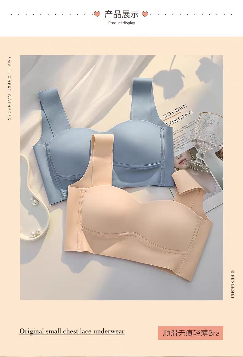 틱톡 얇은 여름용 바다소금 원피스 무지 소녀용 노와이어 노라인 물결무늬 앞후크 브라
