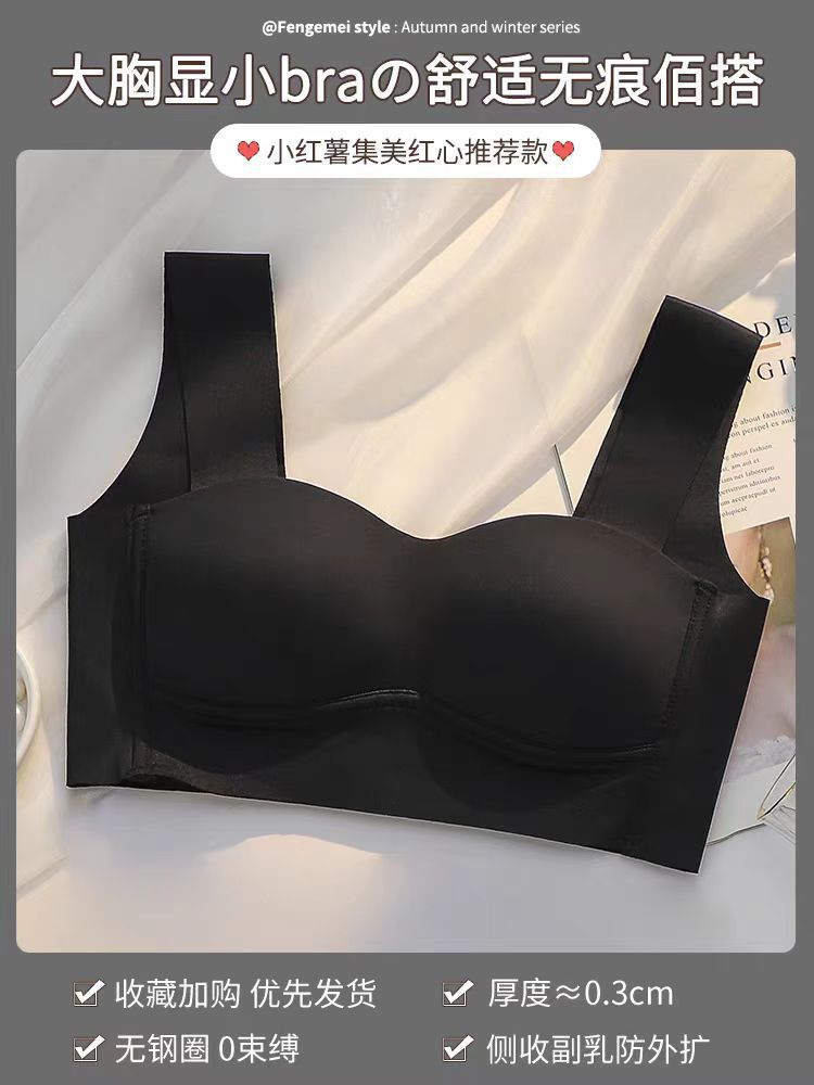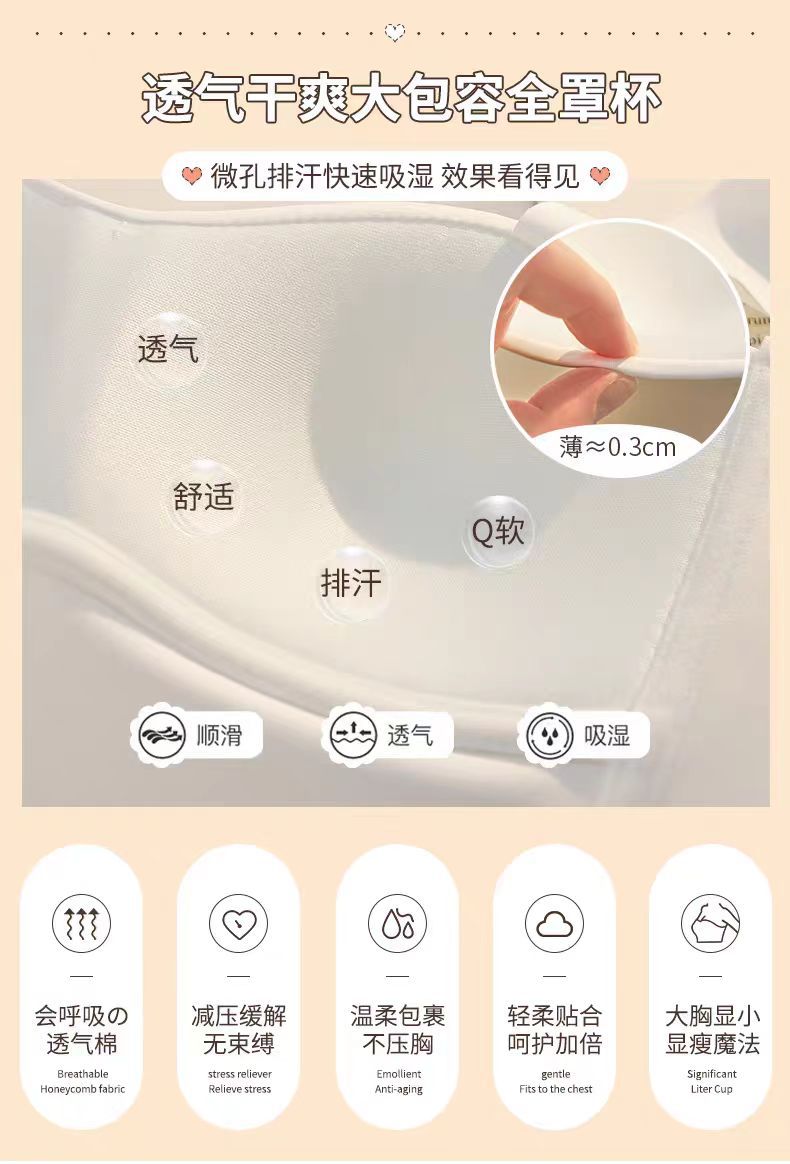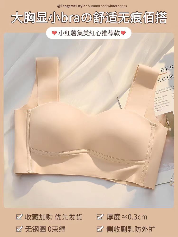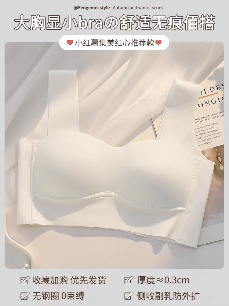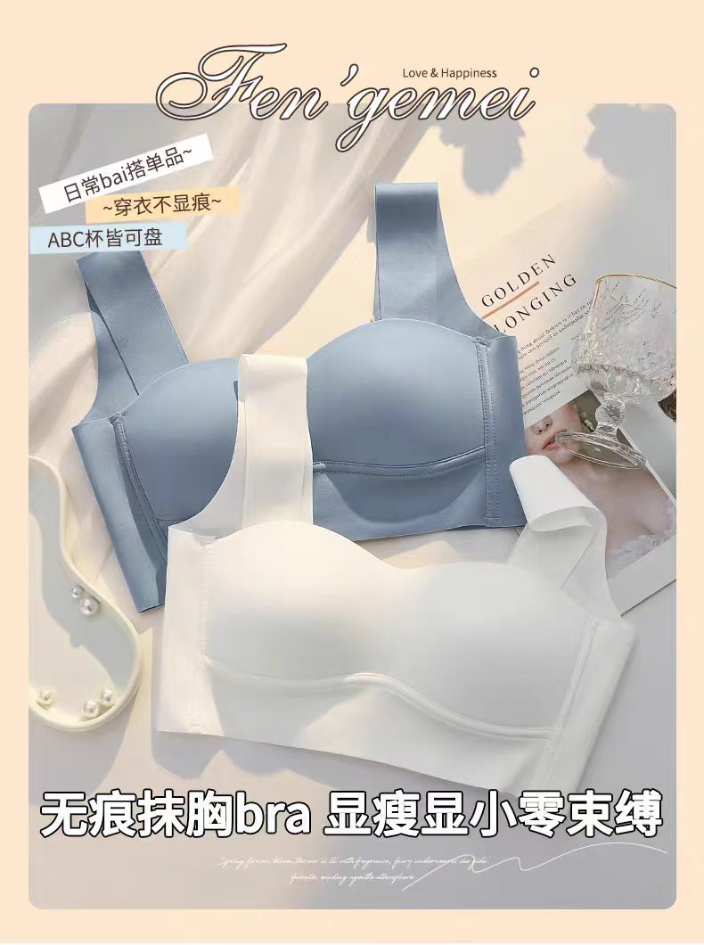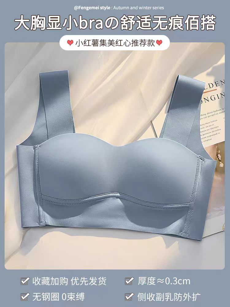 틱톡 얇은 여름용 바다소금 원피스 무지 소녀용 노와이어 노라인 물결무늬 앞후크 브라