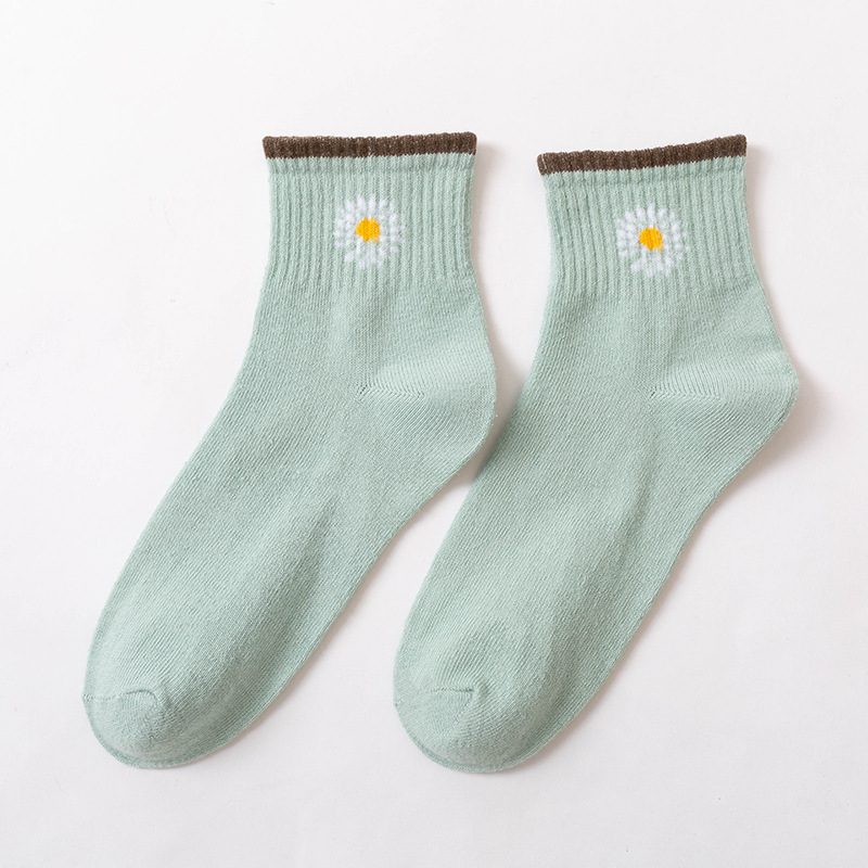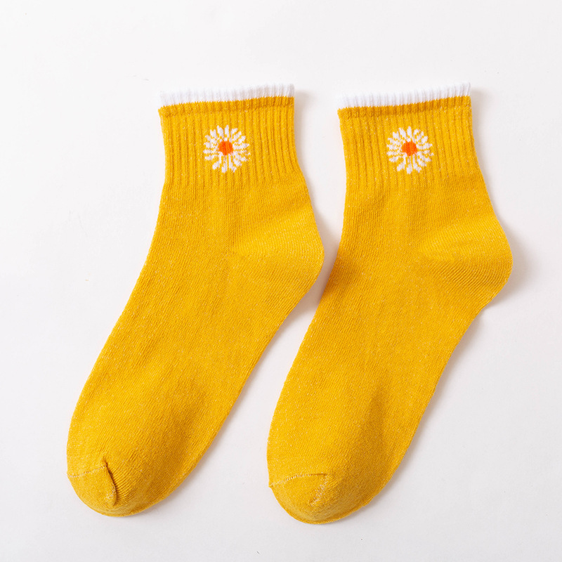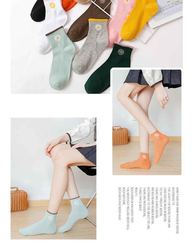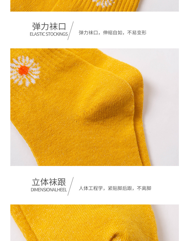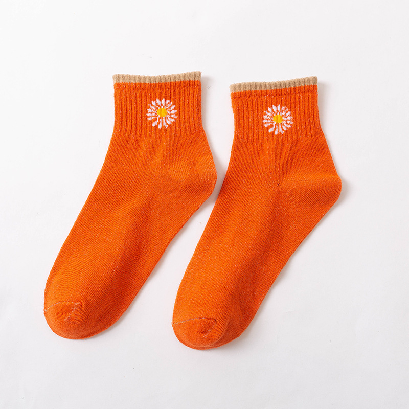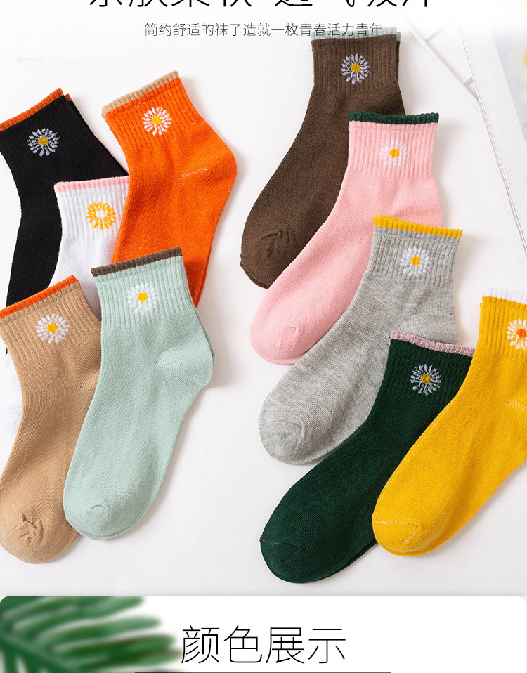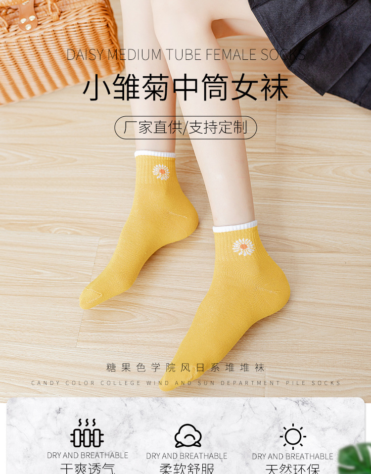여성용 가을 겨울 중목 양말 폴리에스터 면 혼방 캔디 컬러 국화 데이지 중목 양말 도매 여성 양말스토어 가기