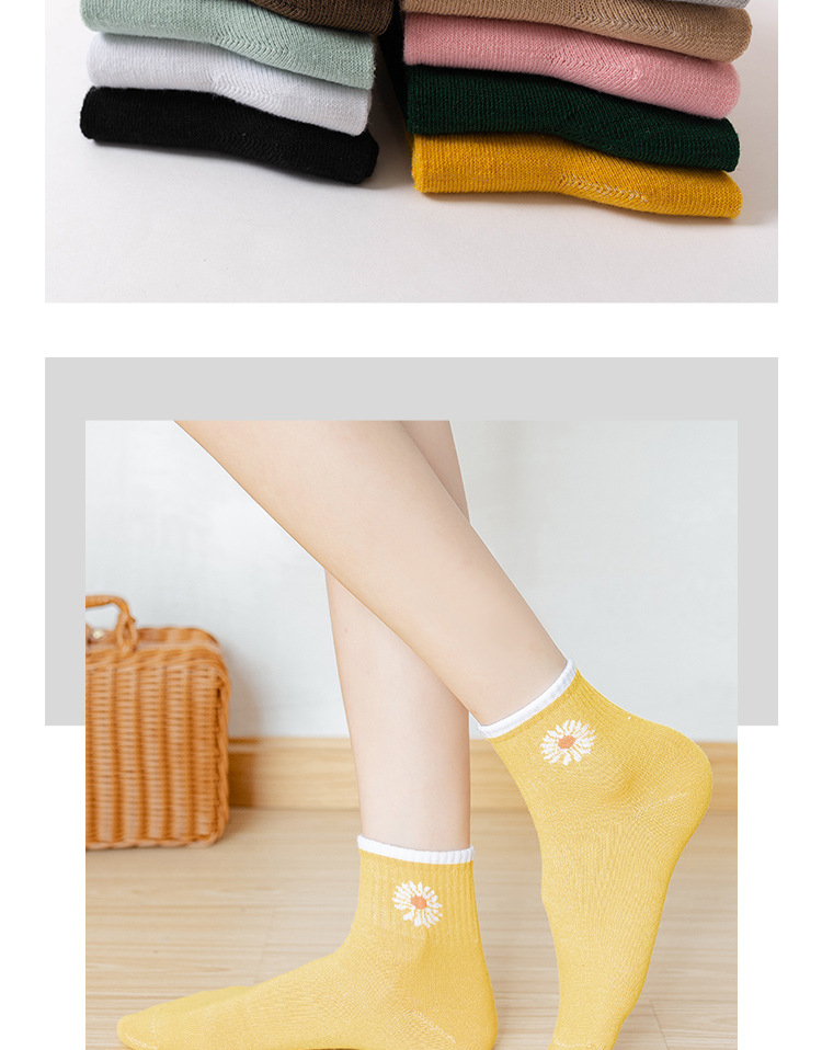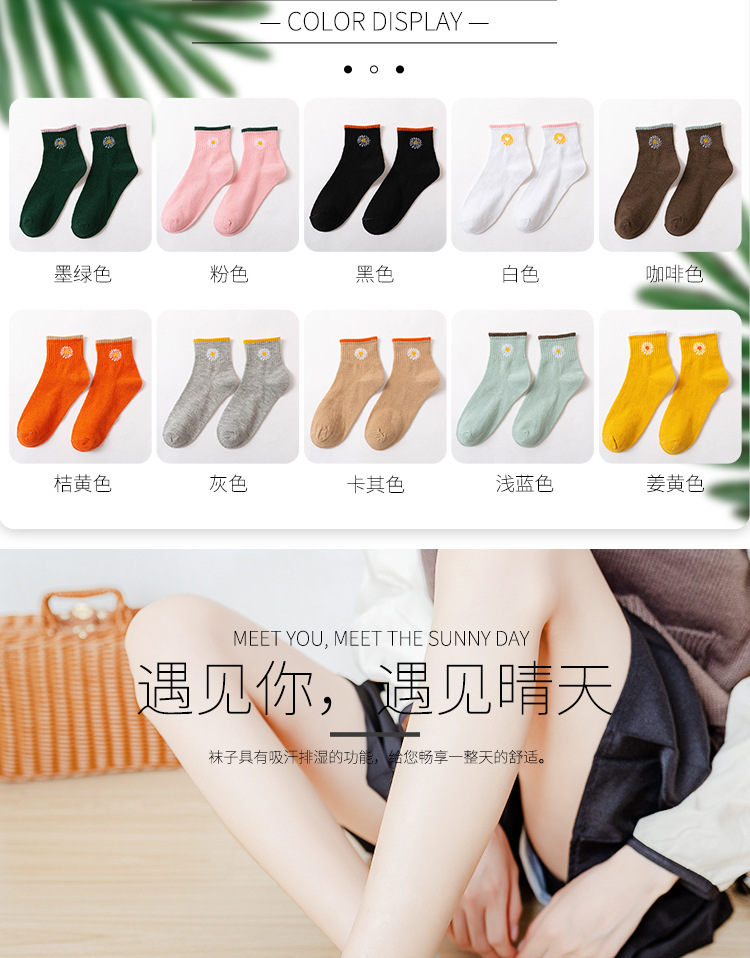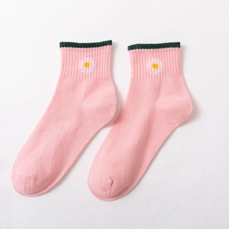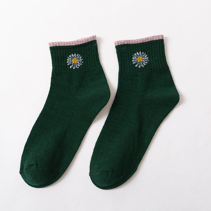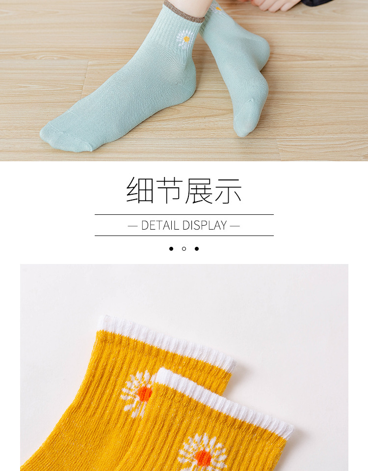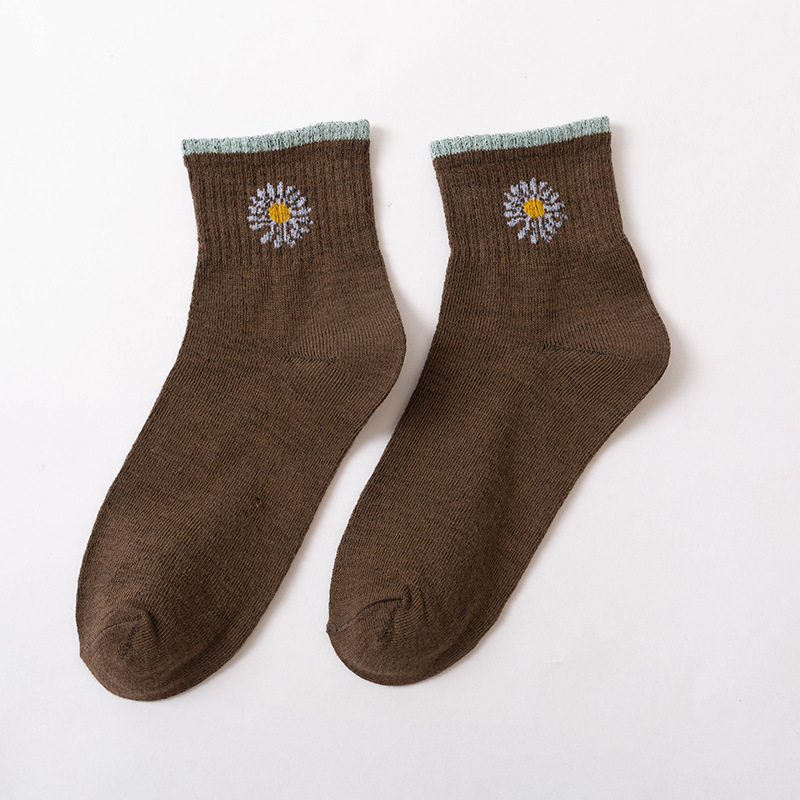 여성용 가을 겨울 중목 양말 폴리에스터 면 혼방 캔디 컬러 국화 데이지 중목 양말 도매 여성 양말스토어 가기