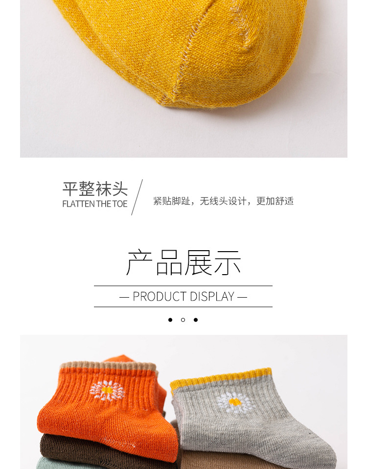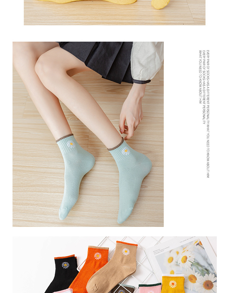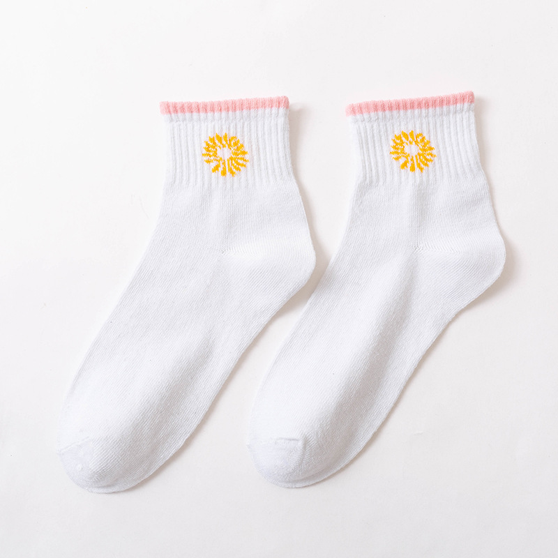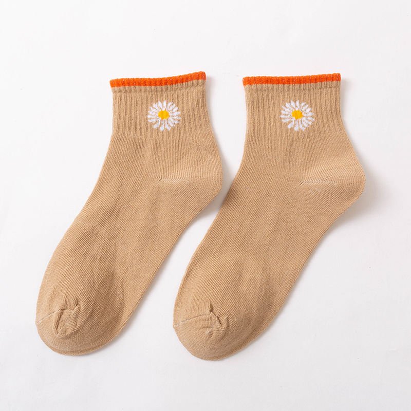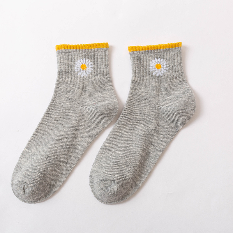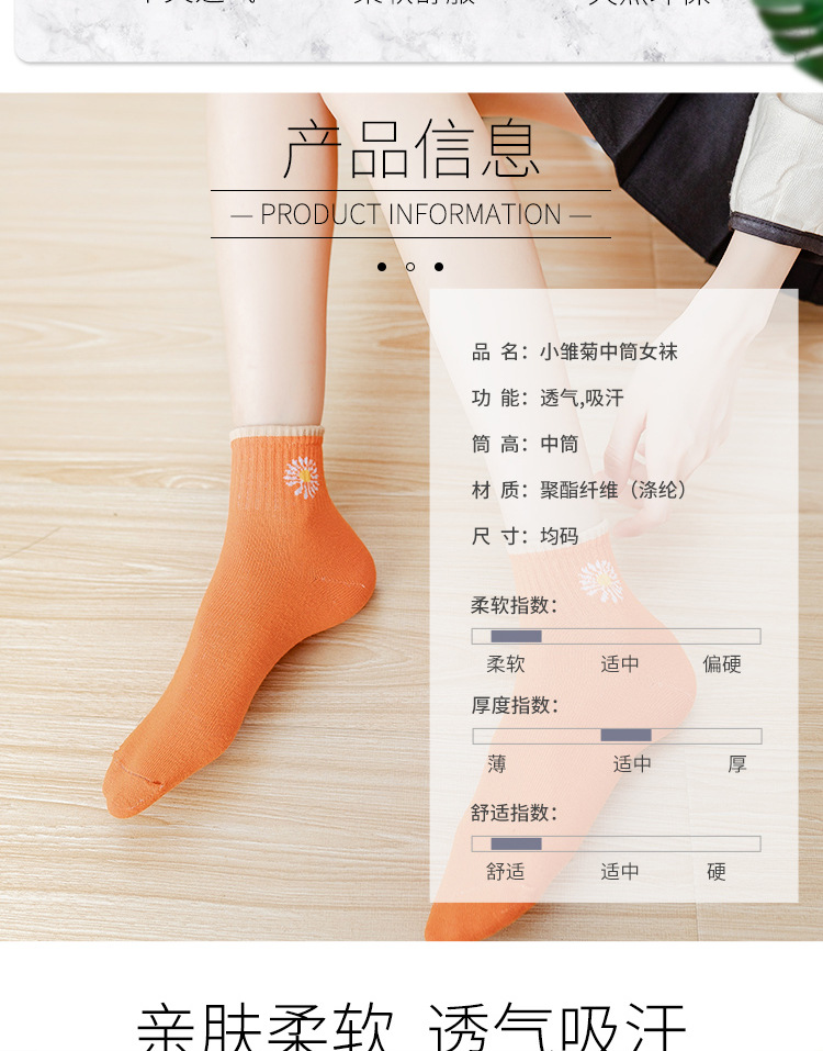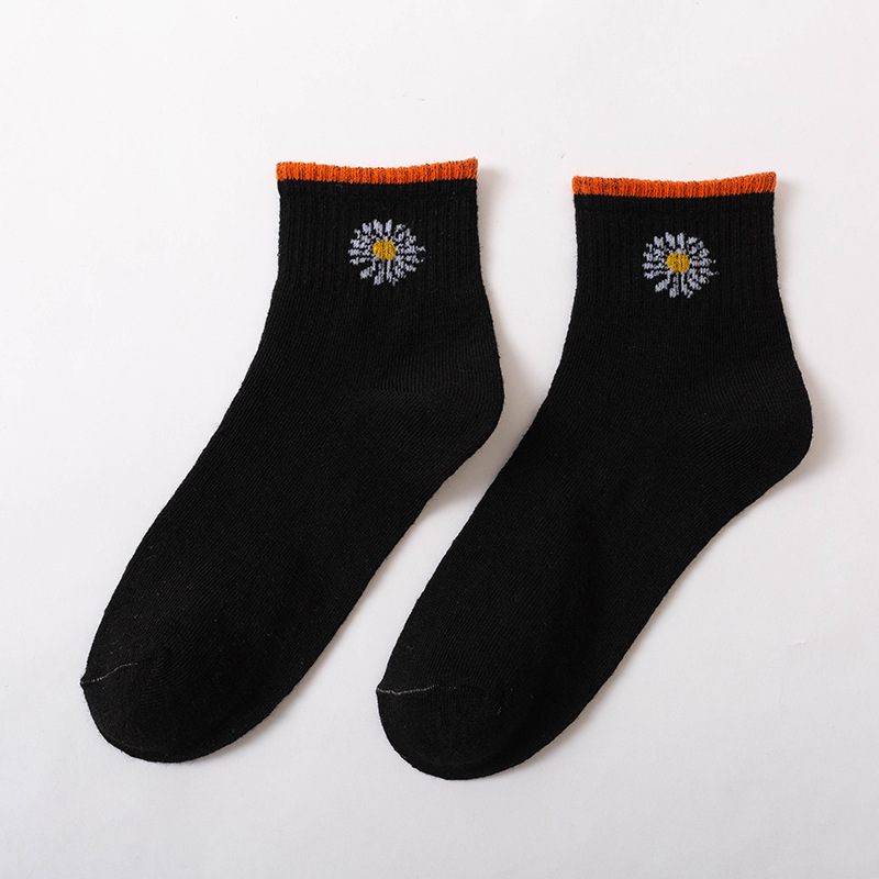 여성용 가을 겨울 중목 양말 폴리에스터 면 혼방 캔디 컬러 국화 데이지 중목 양말 도매 여성 양말스토어 가기