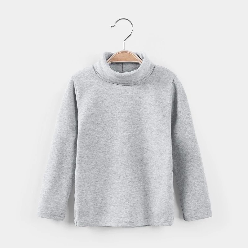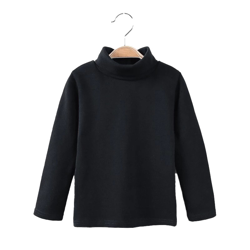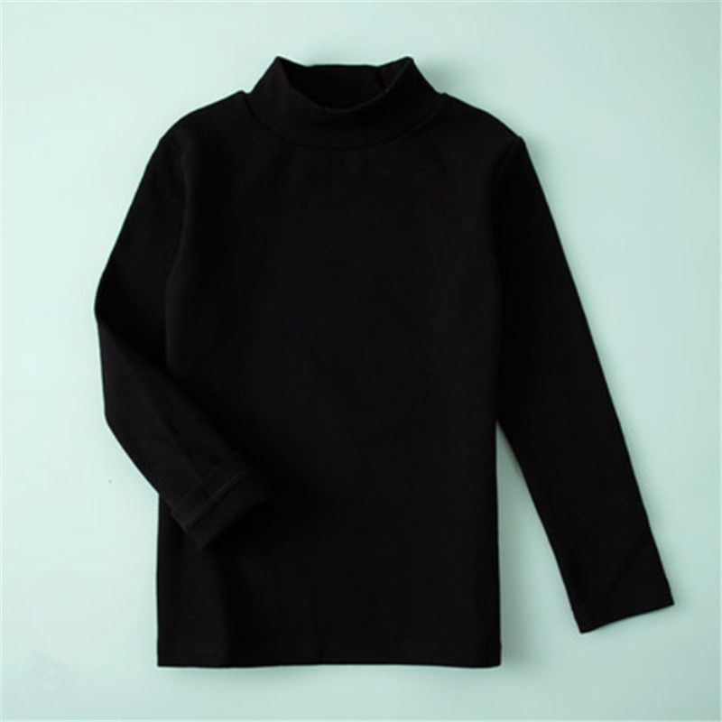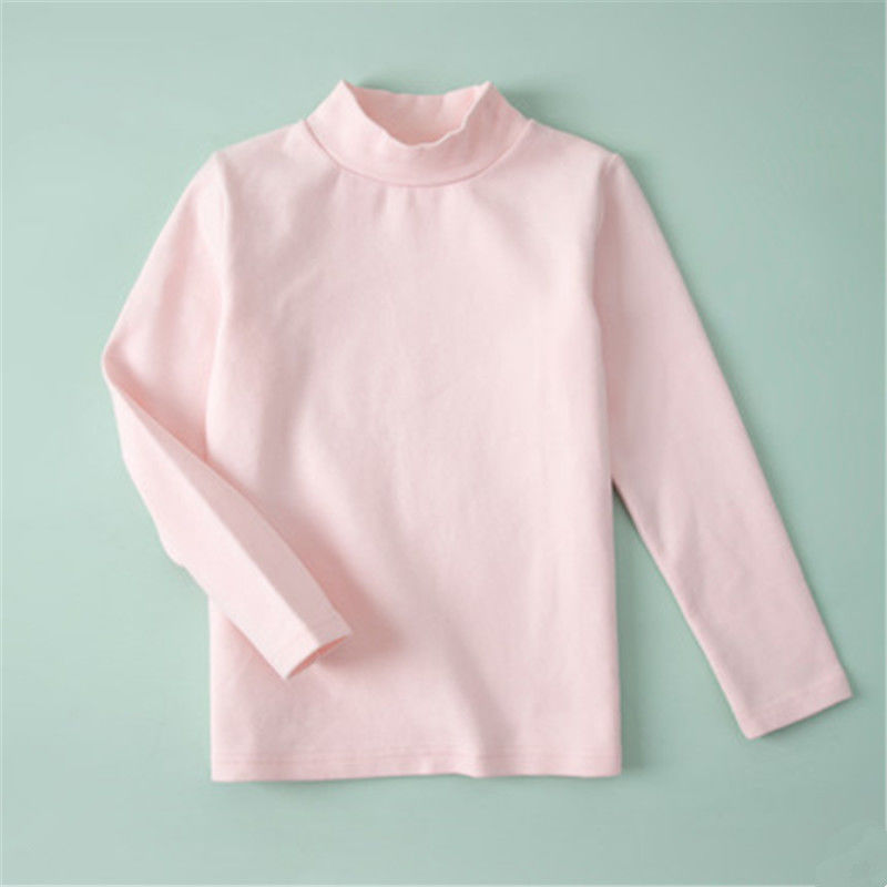 어린이 높은 칼라베이스 셔츠 2024 새로운 가을 및 겨울 코튼 남녀 긴팔 티셔츠 내부 따뜻한 탑 올 매치 트렌디