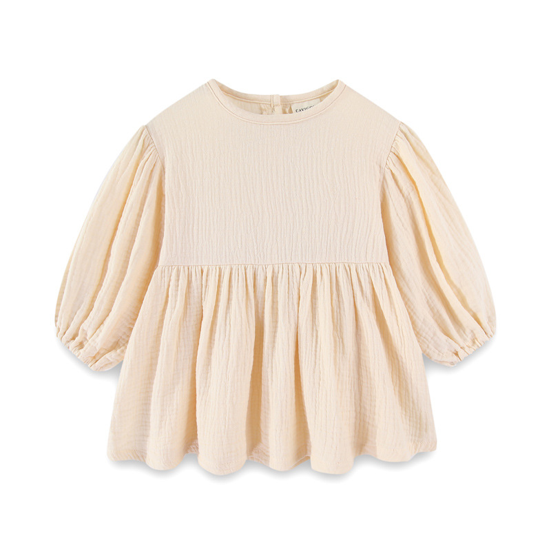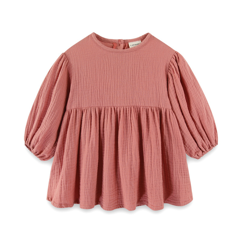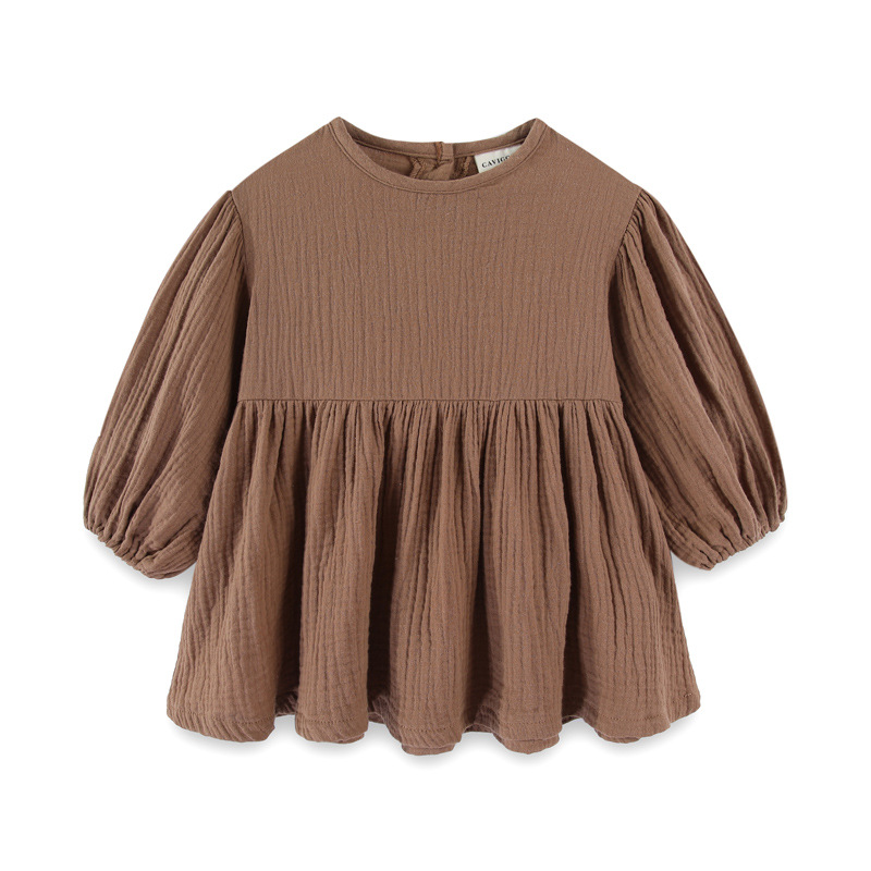 가을 소녀면 및 린넨 일본과 한국 모리 긴팔 원피스 둥근 목 공주 원피스 아기 소녀 린넨 큰 스윙 원피스 대외 무역스토어 가기