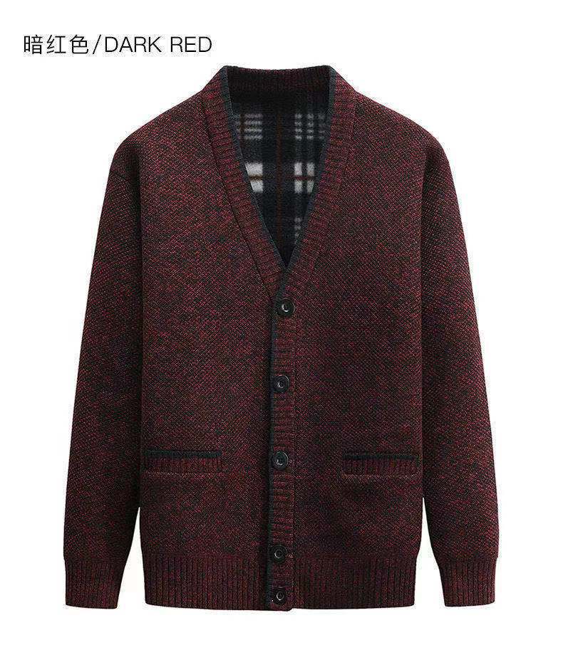 헤어 겨울 중년 남성 기모 스웨터 카디건 패딩 V 넥 중년 및 노인 아버지 니트 코트의 세대